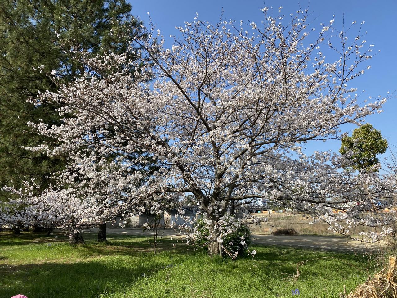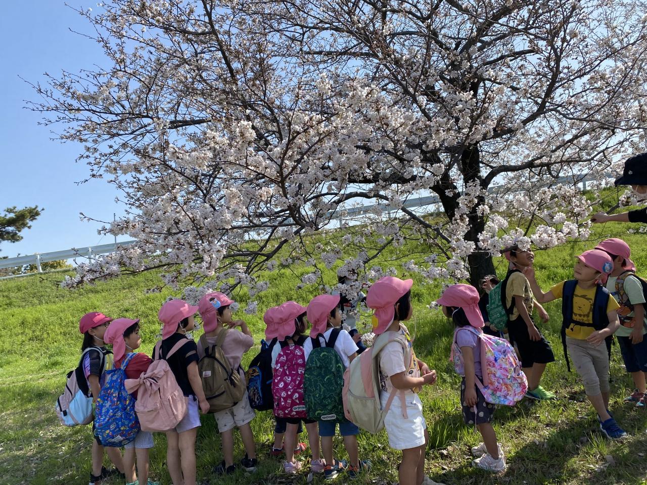 武庫川沿いを歩くと、桜がたくさん咲いていてとってもキレイでした。子ども達と一緒に足を止め、桜を眺めました。