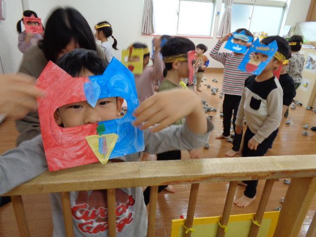 「おにをやっつけろ~」「わぁ~にげろ~~」