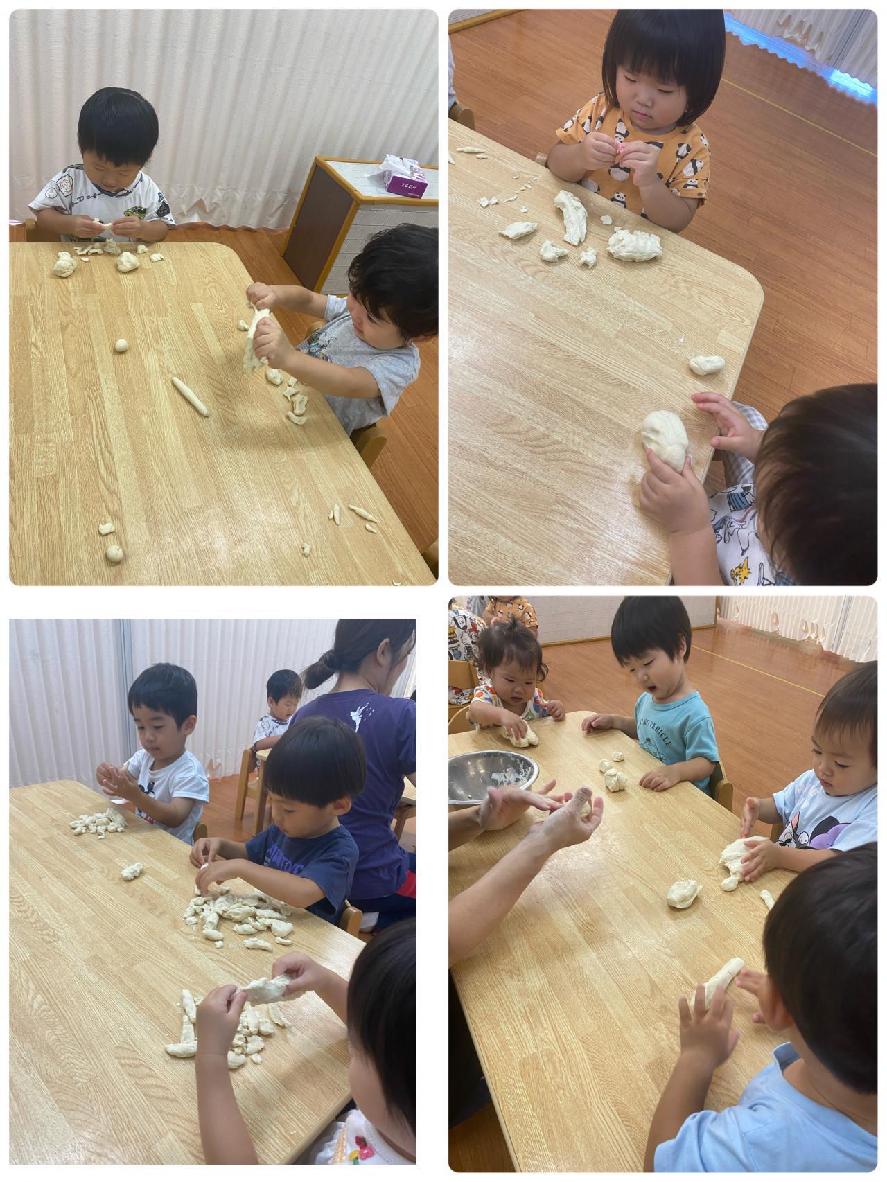 小麦粉粘土で遊んだよ~! ちぎって~まるめて~ほそなが~く