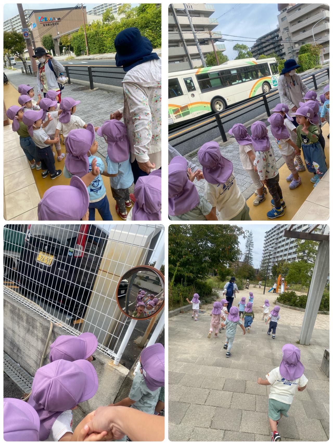 「わぁ、バスだ~」「ばいば~い~公園いってくるねぇ~~」「ぼくのかおうつってるよ~~!!」