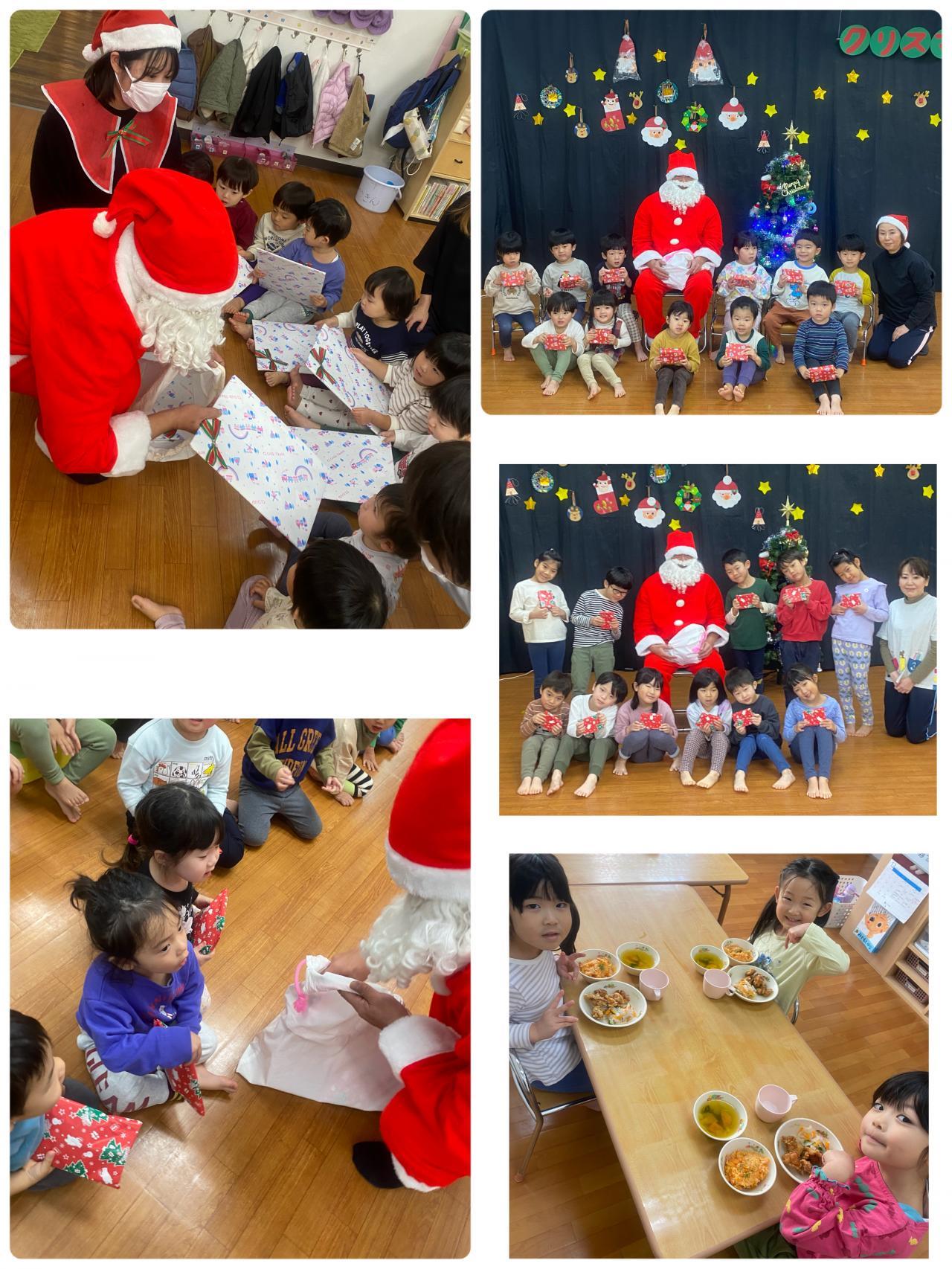 「わ~サンタさんだ~!!」「先生じゃないの~?」「先生ぜんいんいるよ~」「わぁ~ほんものだぁ!!」