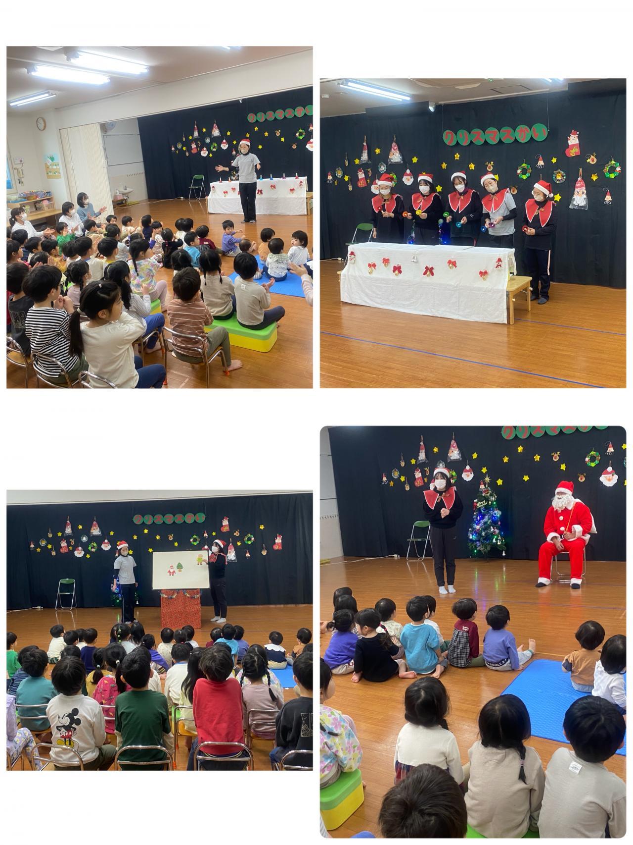 お待ちかねのクリスマス会。朝からみんなドキドキ、ウキウキ。「ほいくえんにサンタさんくるの?」「おはなしできるの??」