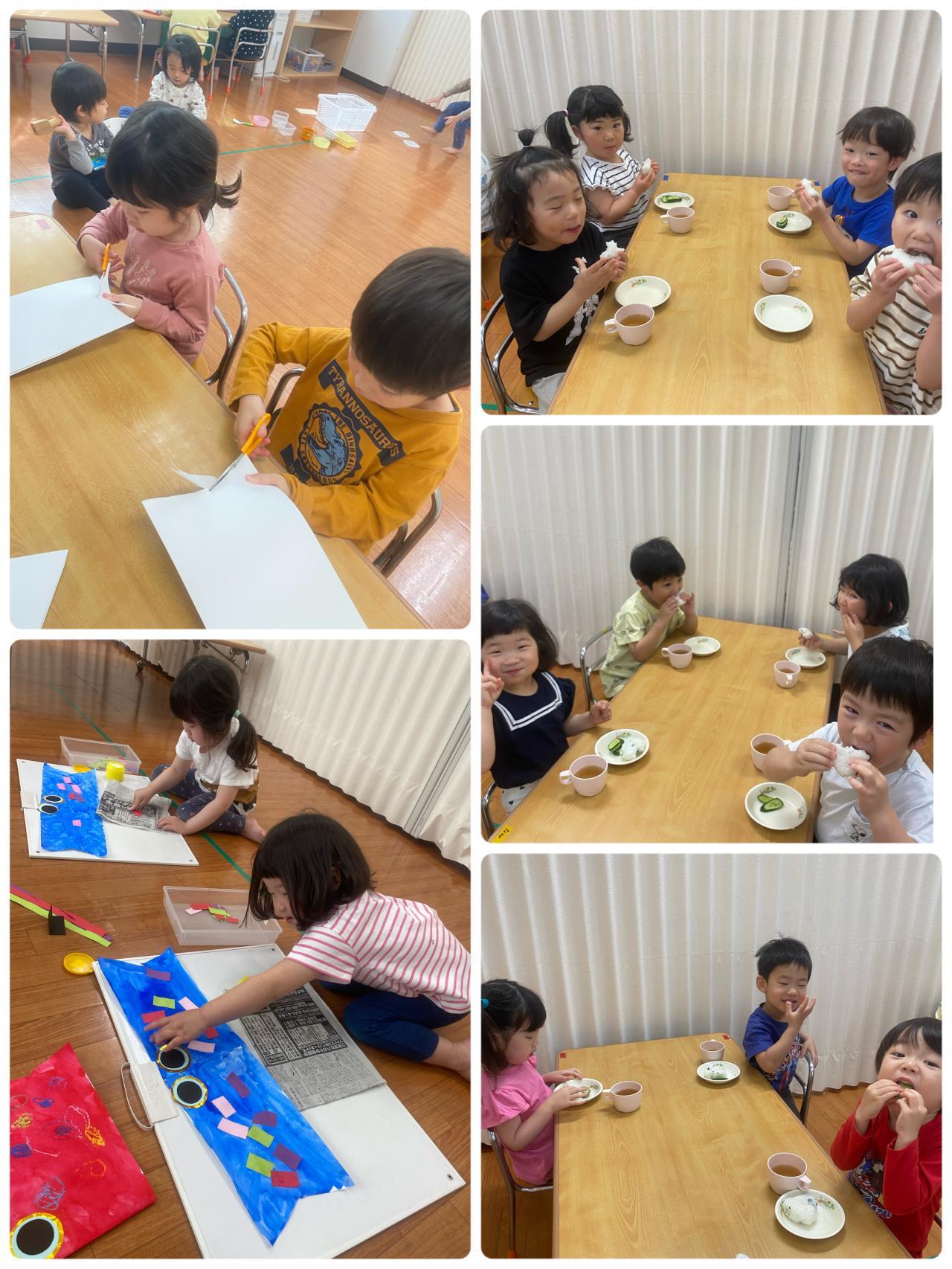 こいのぼり製作のしっぽだって自分で切れるよ!!おにぎりもおおきなお口で「あ~ん!」