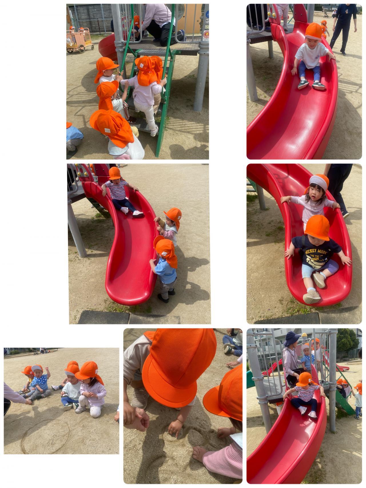 お外だって歩いて行くよ~~!!「すべりだいこわくないよ!!」