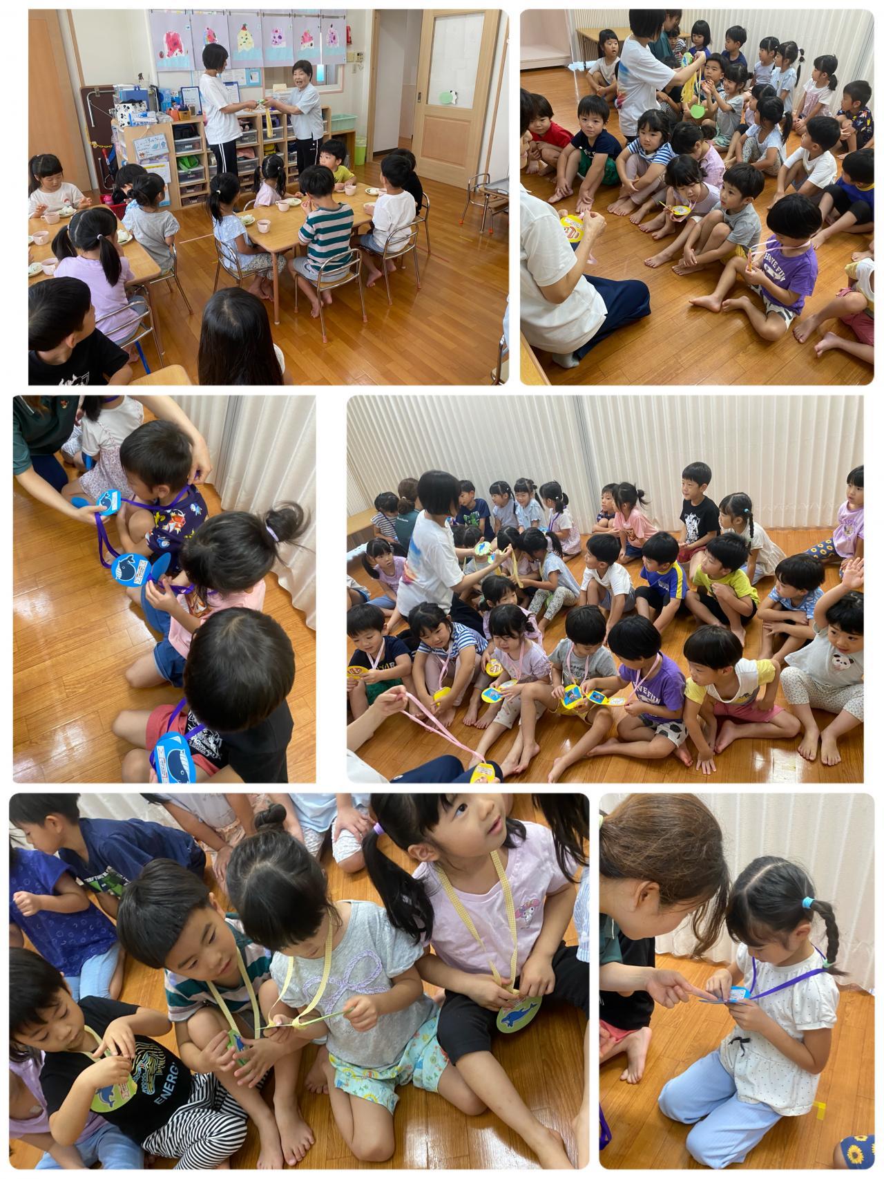 園長先生から幼児組のみんなにメダルのプレゼントです!!!