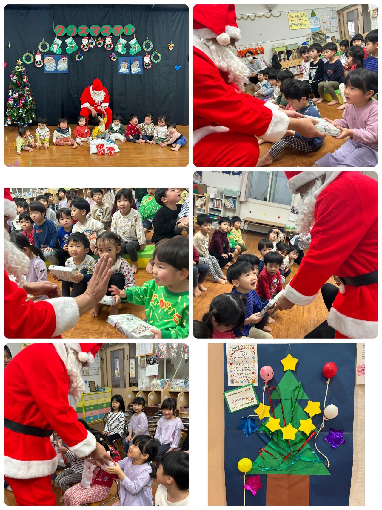サンタさんがやってきました!!らいおん組さんが出した手紙を読んで来てくれたみたいです。「やった~!!!!」「プレゼントありがとう。またきてね」