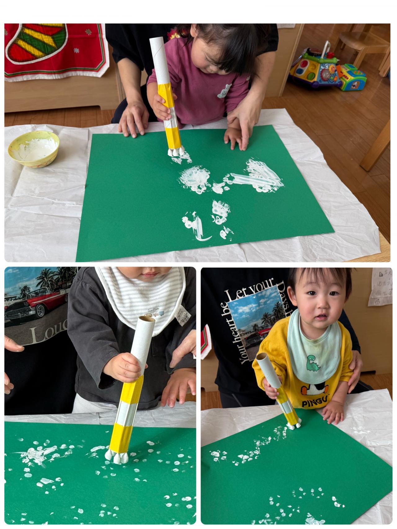 タンポを使ってクリスマス製作をしたよ。「ポンポンポン!!」