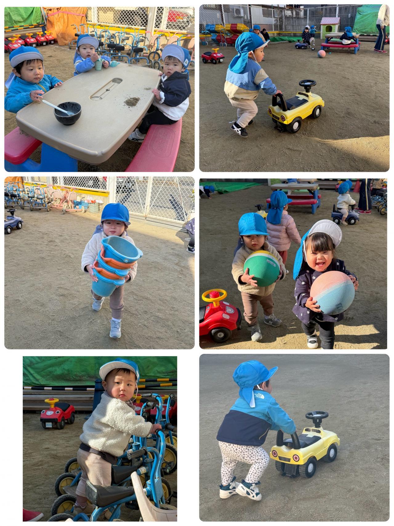 園庭であそんだよ~。活動範囲も広くなり色々なものに興味津々。あそびもどんどん拡がっています。