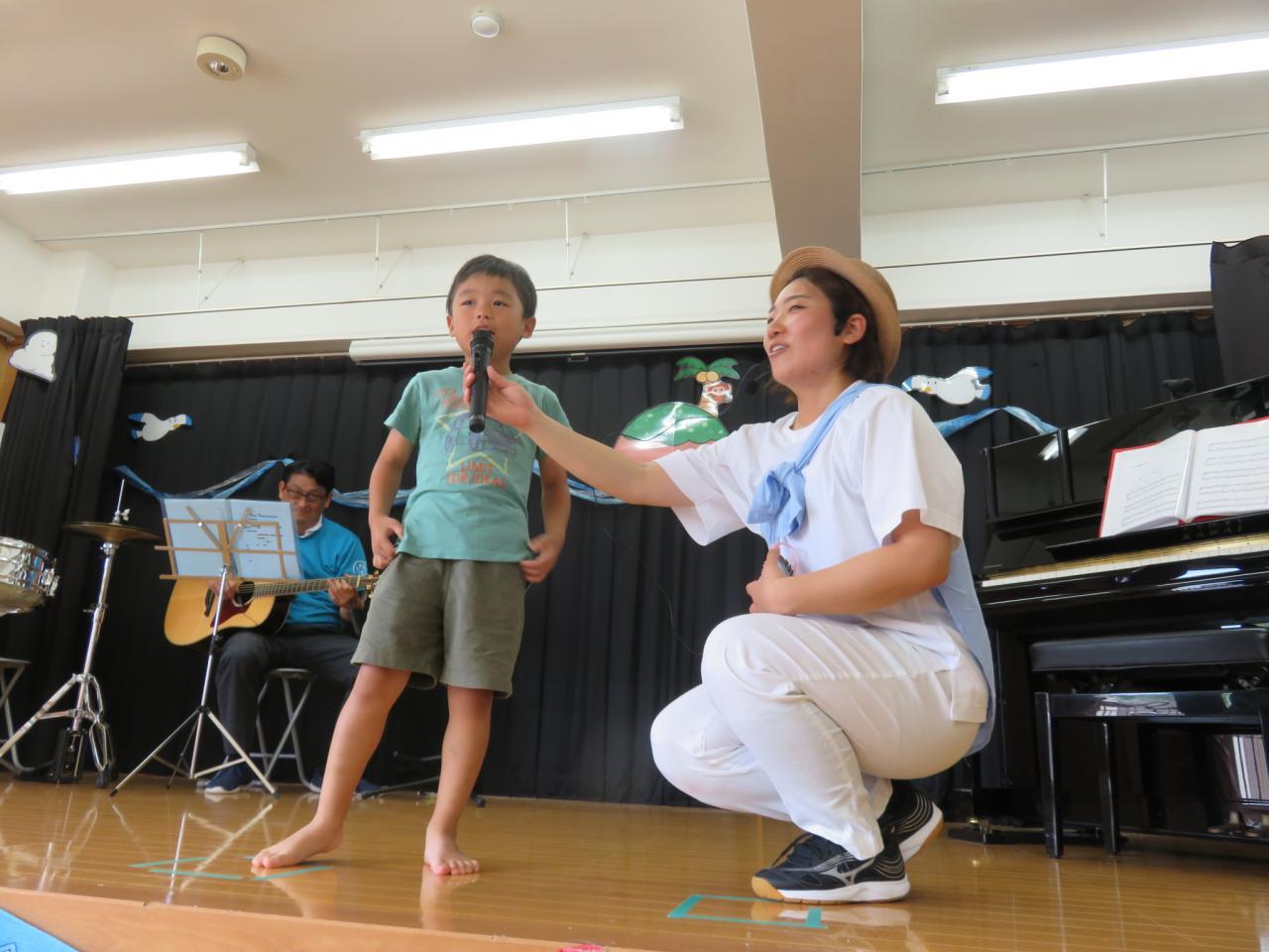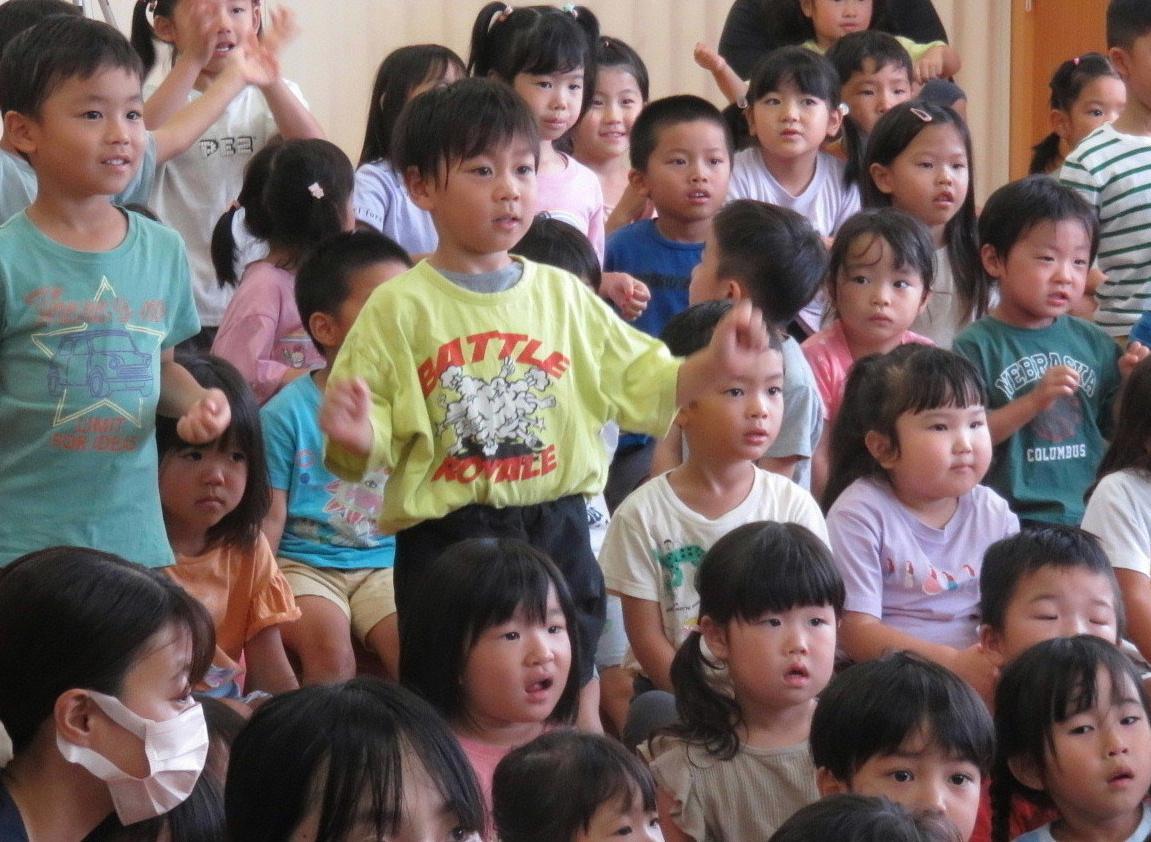 「♪アイアイ」のところでみんな踊りながら歌っていました。