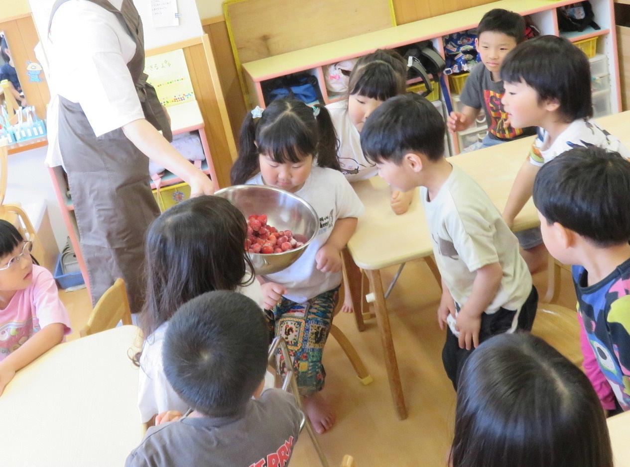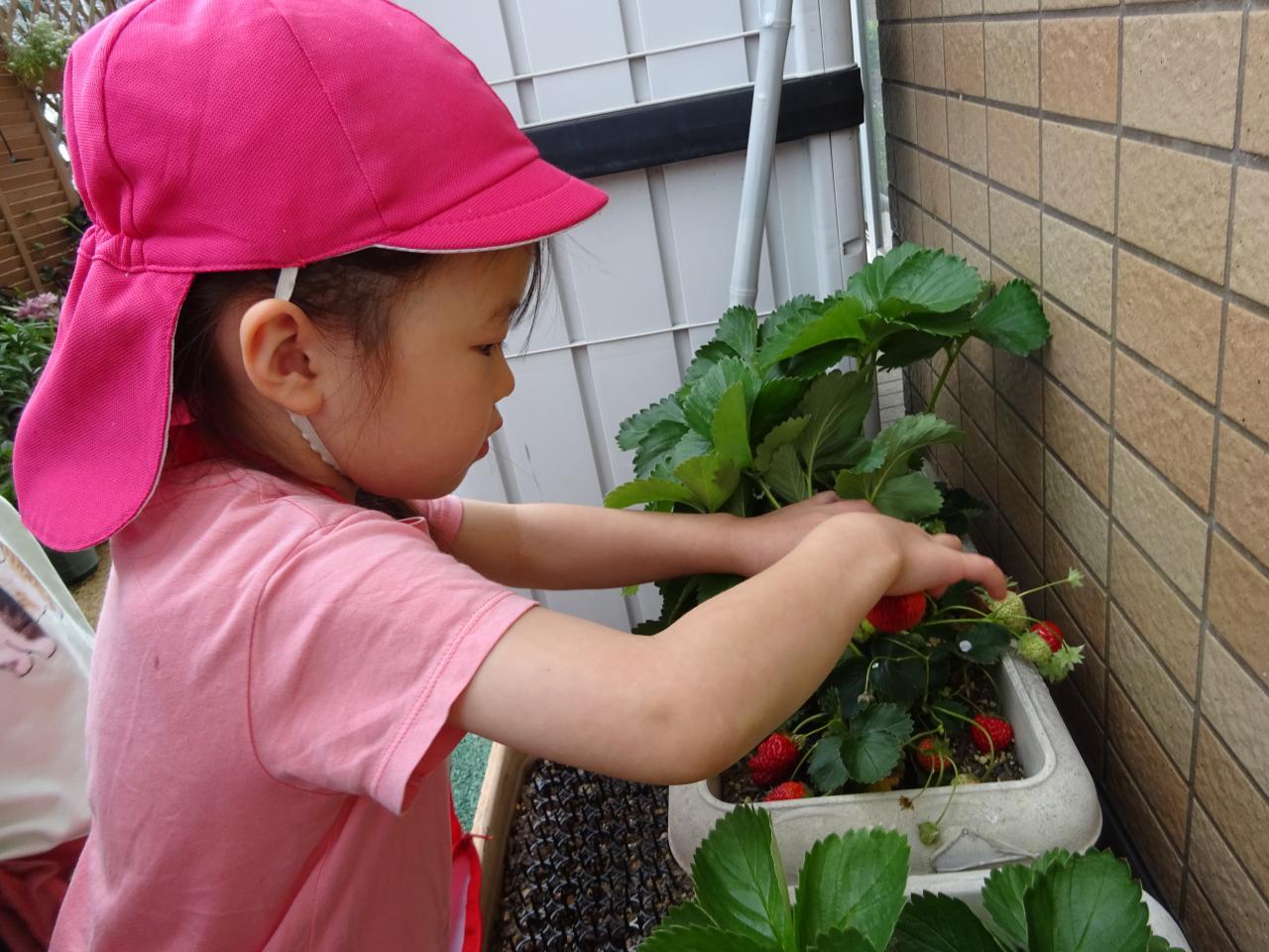 ぞう組さんが、プランターで育てていたイチゴを収穫しジャムを作りました。