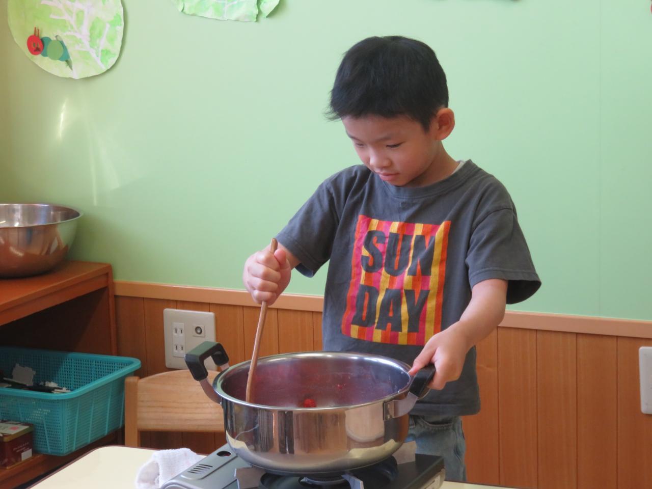 みんなが混ぜ終わったら、出来上がりまで煮詰める作業は給食の先生にお願いしました。