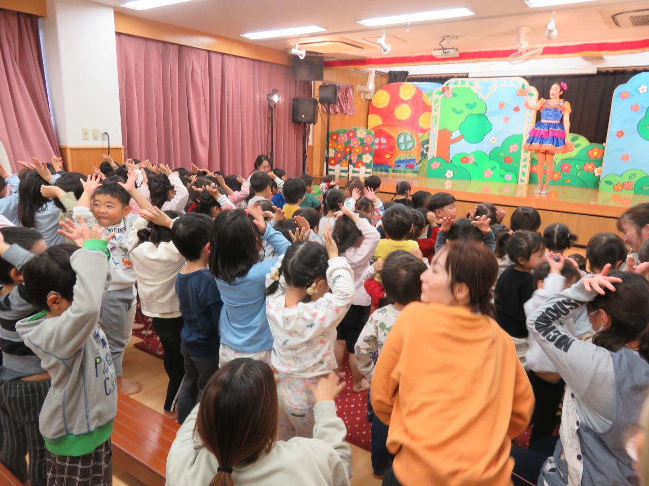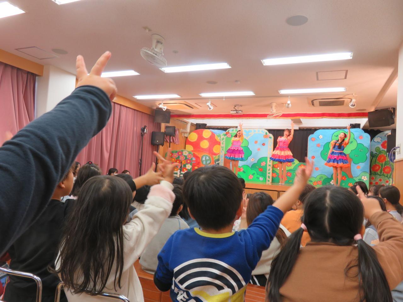 ♪虹(手話)、そしてミニミニミュージカル「ありとキリギリス」、ダンスメドレーなど盛りだくさん!子どもたちも、おねえさんと一緒に歌って踊って楽しい時間をすごしました。