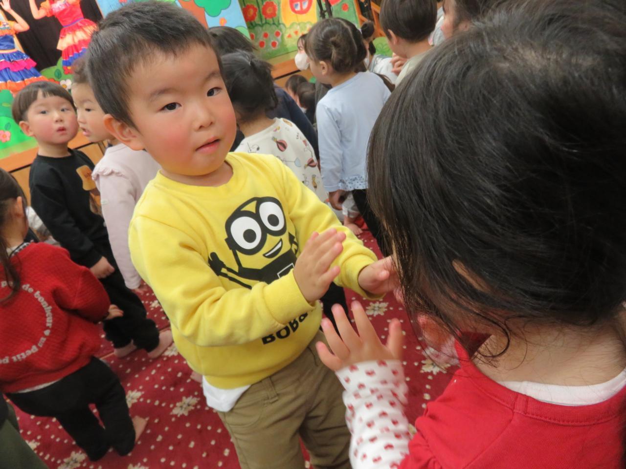 アンコールの声に応えて♪ありがとうの花 も歌っていただき、最後はおねえさんとタッチでお別れ。子どもたちはとっても嬉しそうにおねえさんとタッチしていました。