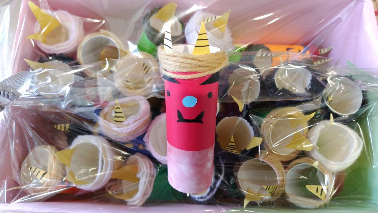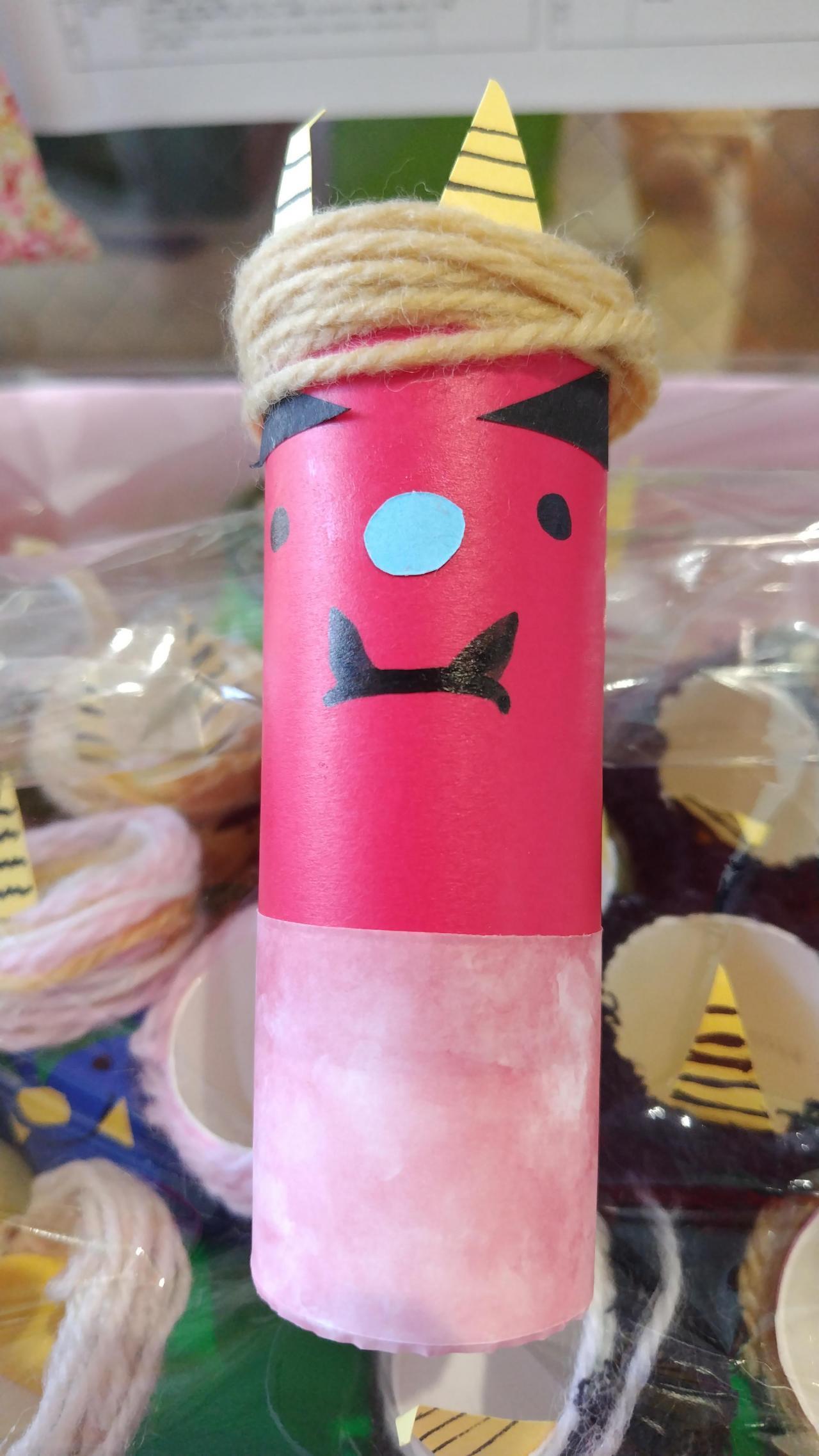 1/29 先月クリスマスプレゼントを届けに行った近くの老人ホームのスタッフのかたが、かわいい鬼のプレゼントを届けにきてくれました! クリスマスプレゼントのお返しに、入居されているおじいちゃんおばあちゃん方が節分にあわせて子どもたちにたくさん作ってくれたそうです。