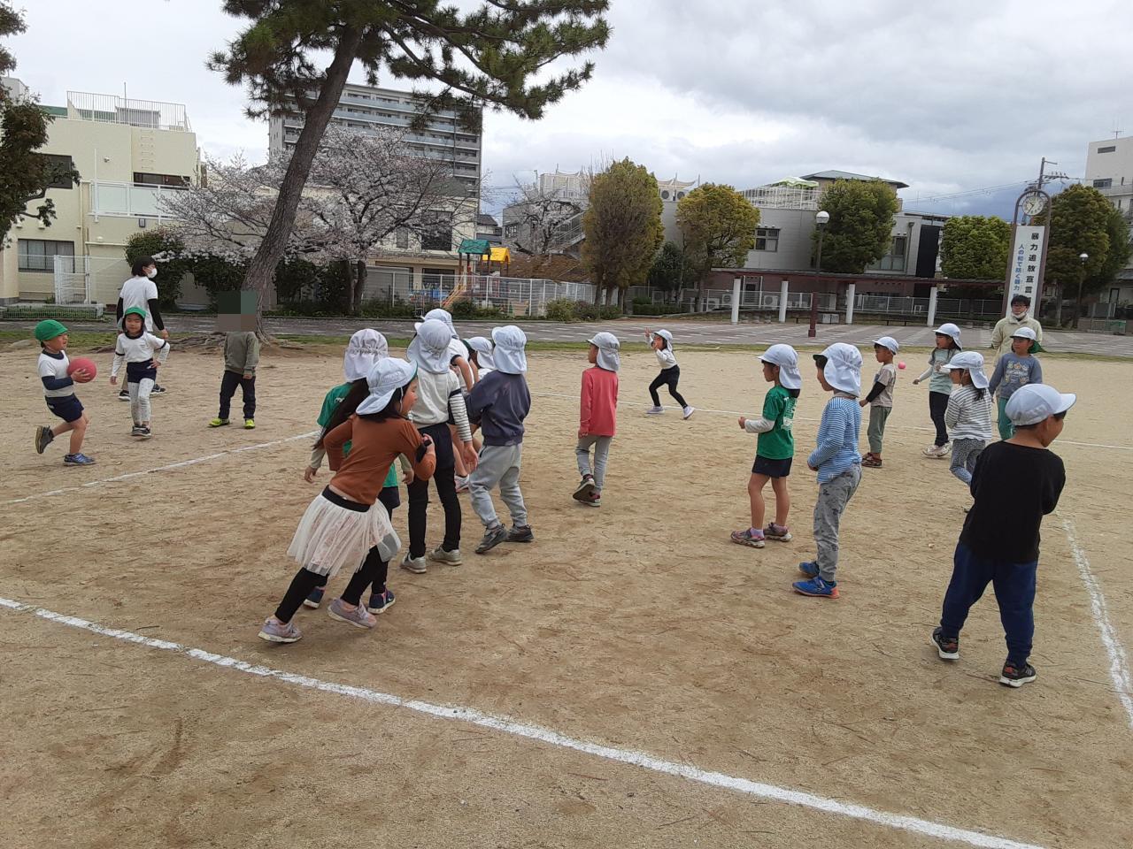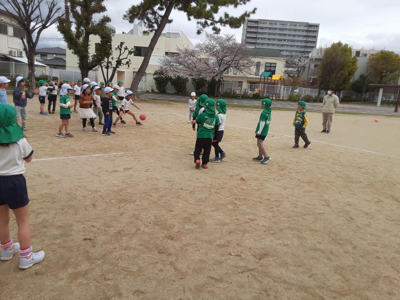 今日は緑組で過ごす最後の日。みんなで何をして遊ぶのか事前に決めて、昨日はいす取りゲーム、宝探しゲーム。そして今日は三島公園でドッジボールと「うそ・ほんとゲーム」をしました。ドッジボールでは、来たボールを上手にキャッチする子や当たらないように必死に逃げ回る子と、大盛り上がりでした。