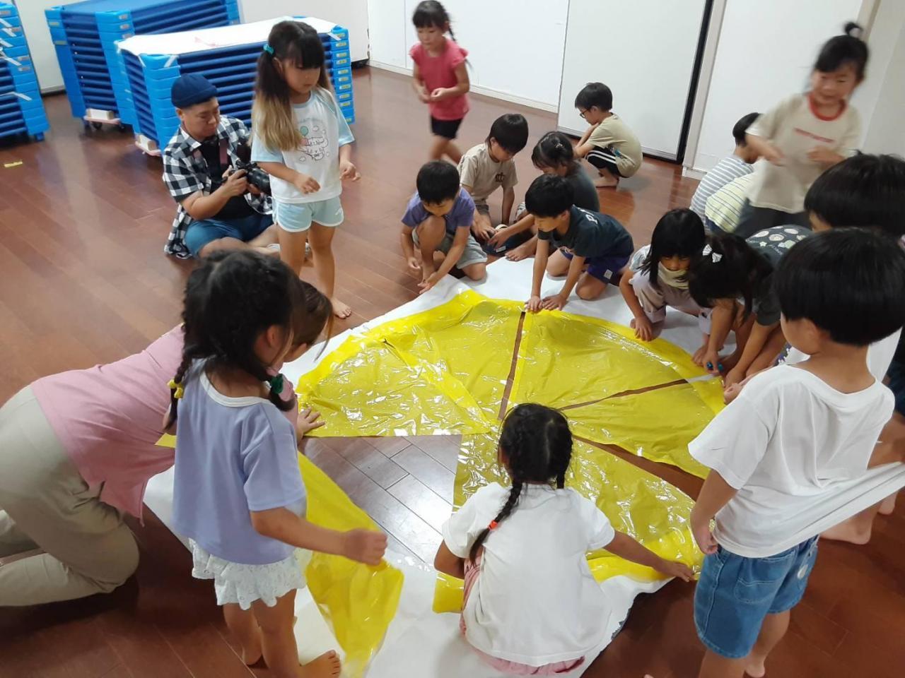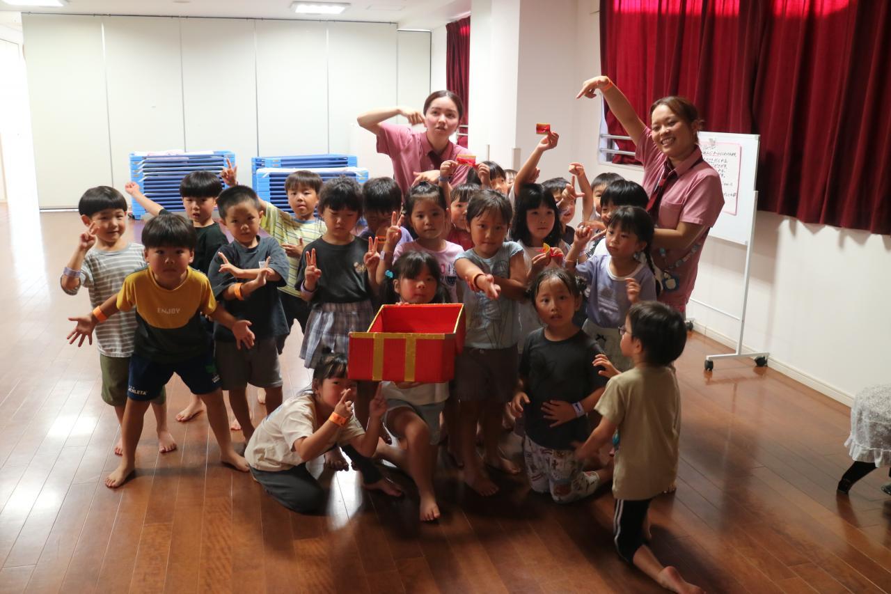 ずっと楽しみにしていたお泊り保育がありました。園庭で思いきりウォーターパークをしたり、ホールでボール鬼ごっこをしたりして午前中の活動を楽しんでいた子どもたちでした。