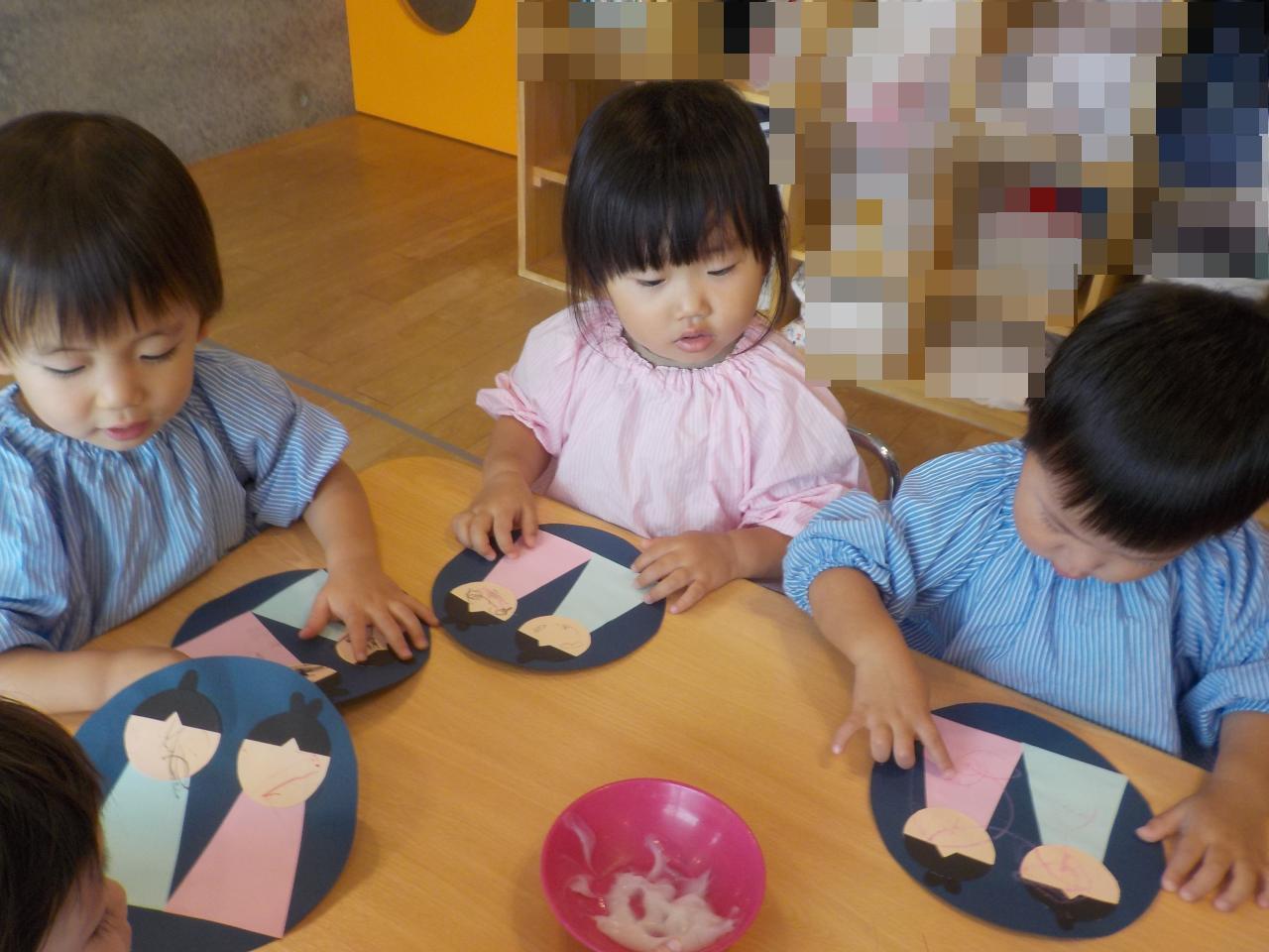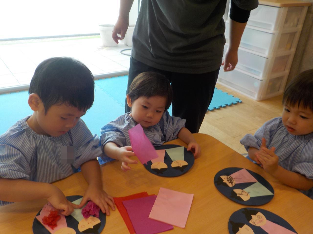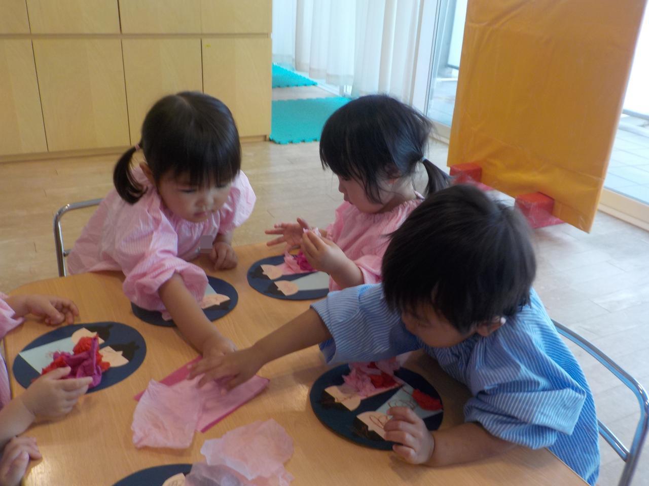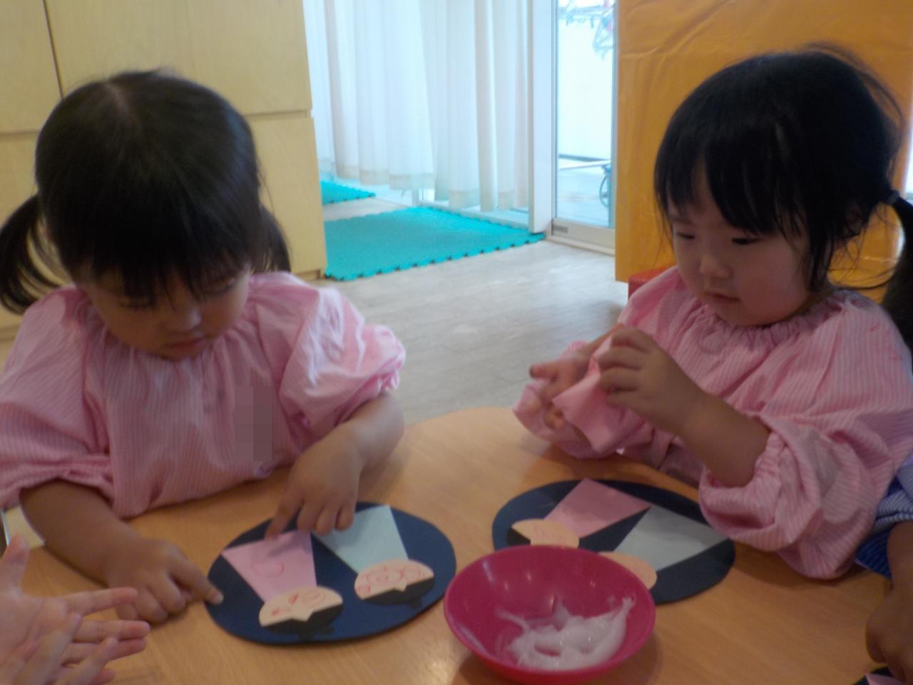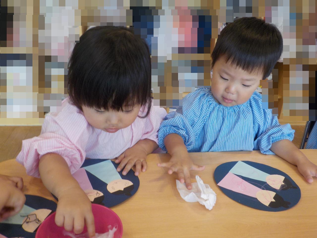 人差し指で上手にのりを取り、楽しそうに塗り広げていましたよ😆