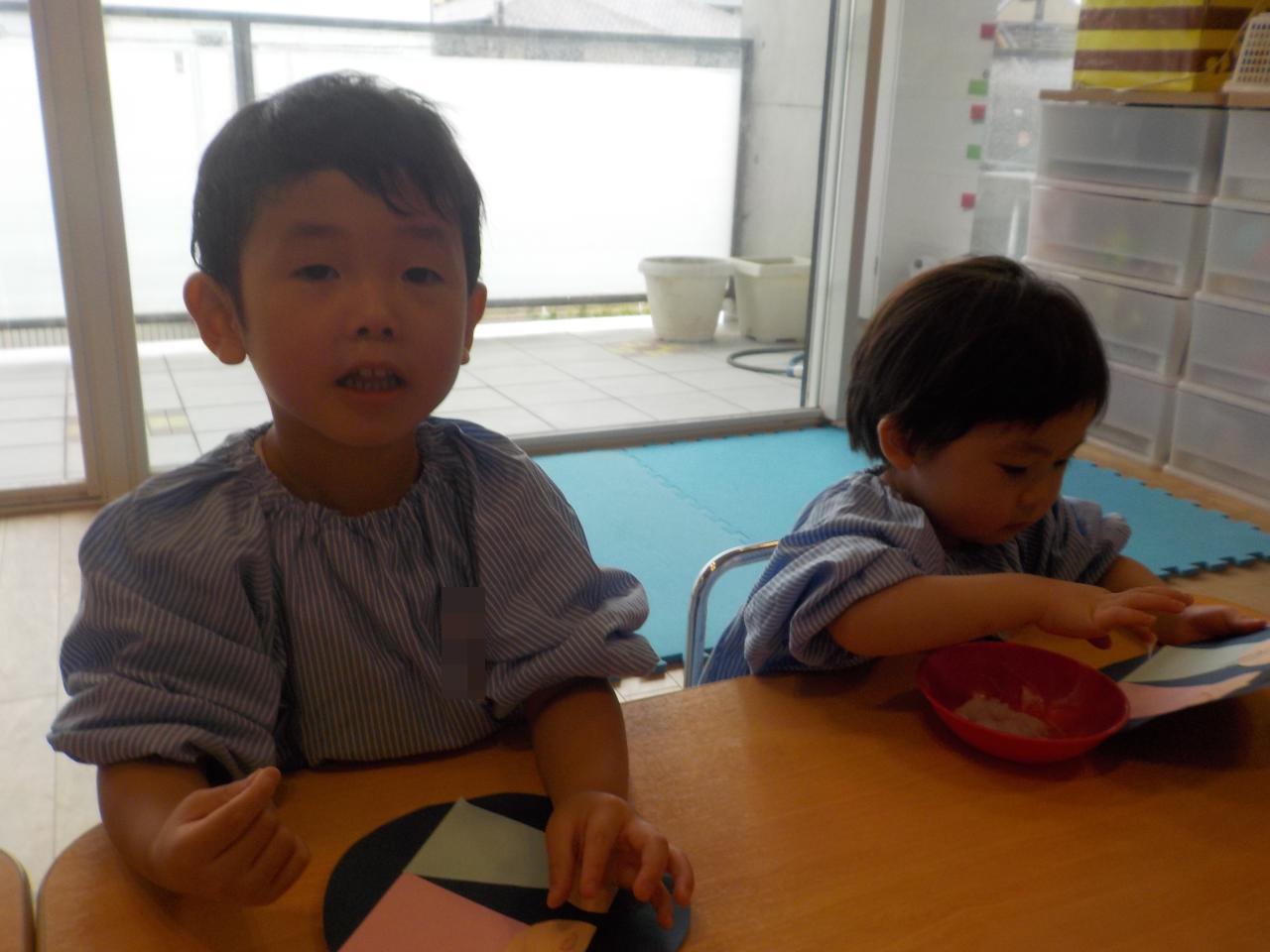 りんごぐみになり初めて、のりを使った製作に挑戦しました✨