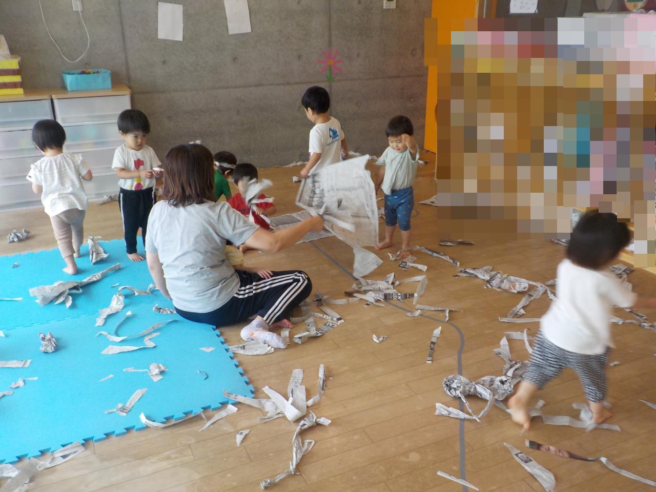 いろいろな遊び方をして、たっぷり新聞紙あそびを楽しんでいましたよ🤩