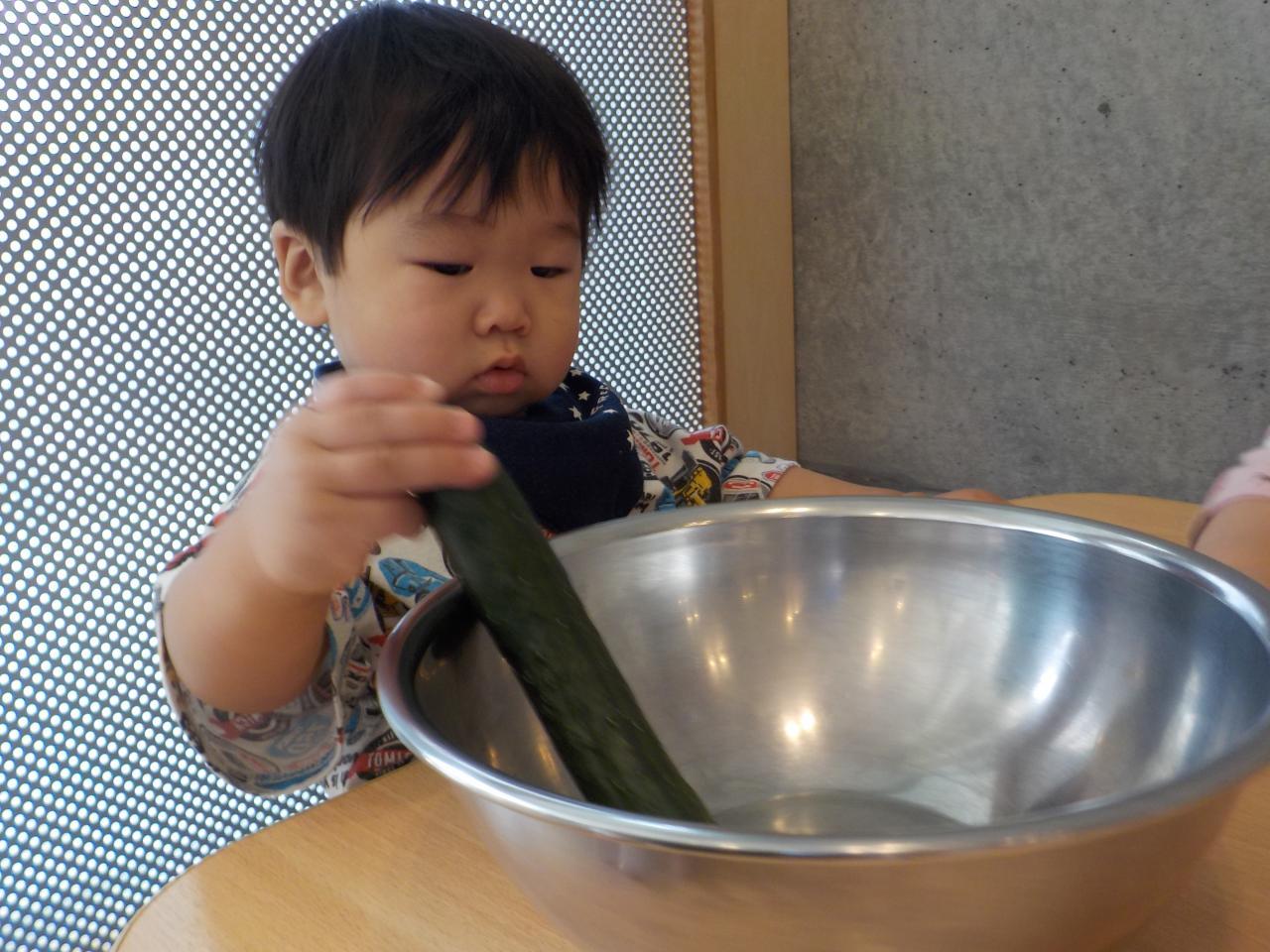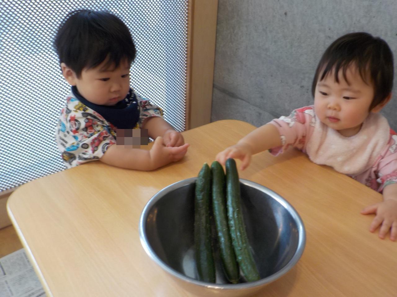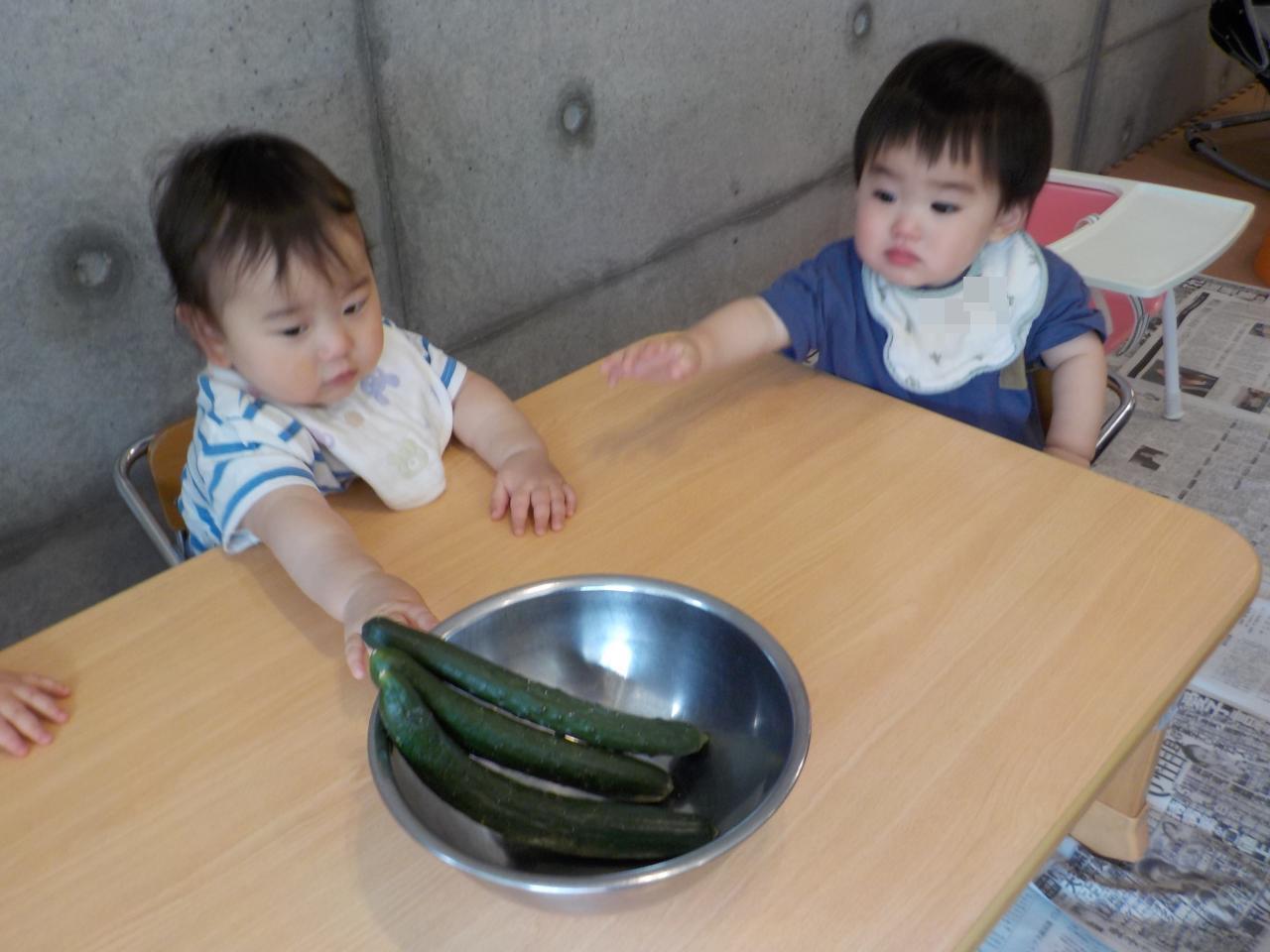 きゅうりのつぶつぶを触ったり匂いを嗅いだりしていましたよ。