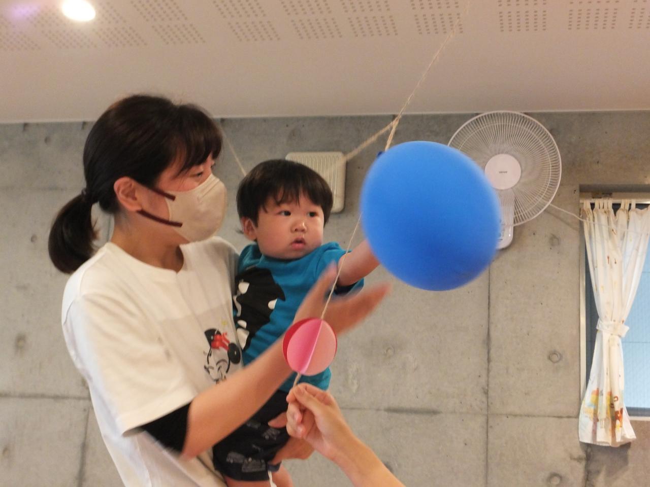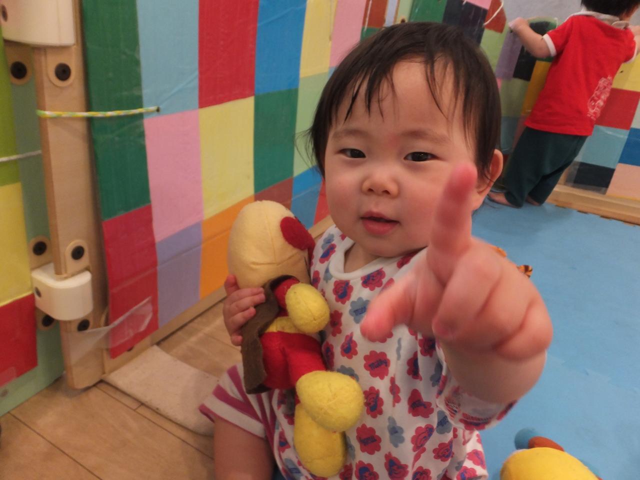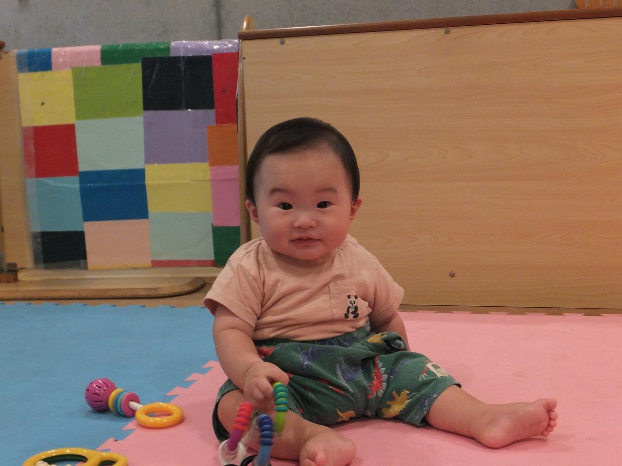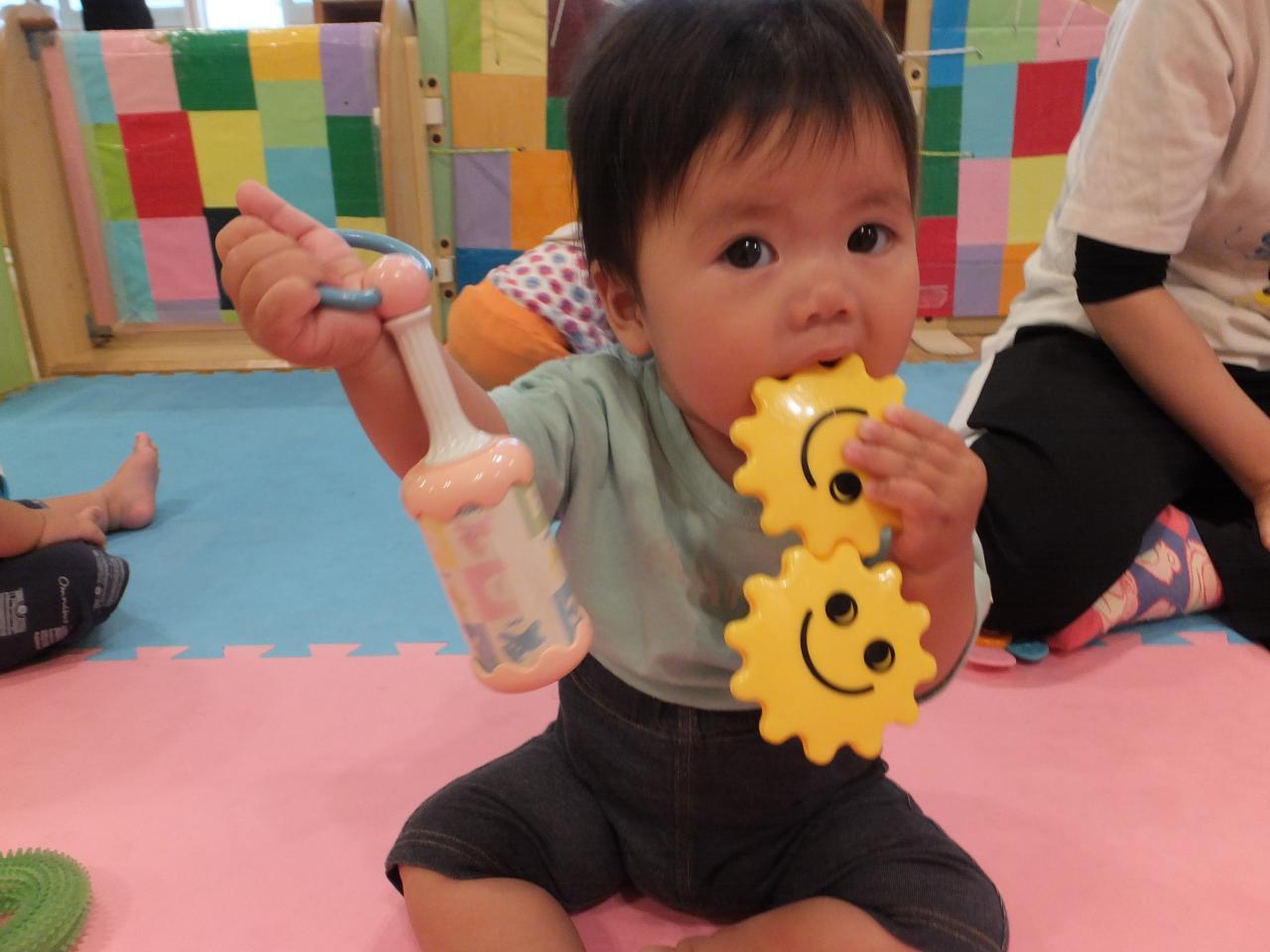 お部屋では、好きなおもちゃを見つけて遊んだり、保育者とふれあいあそびをしたりして楽しんでいますよ。