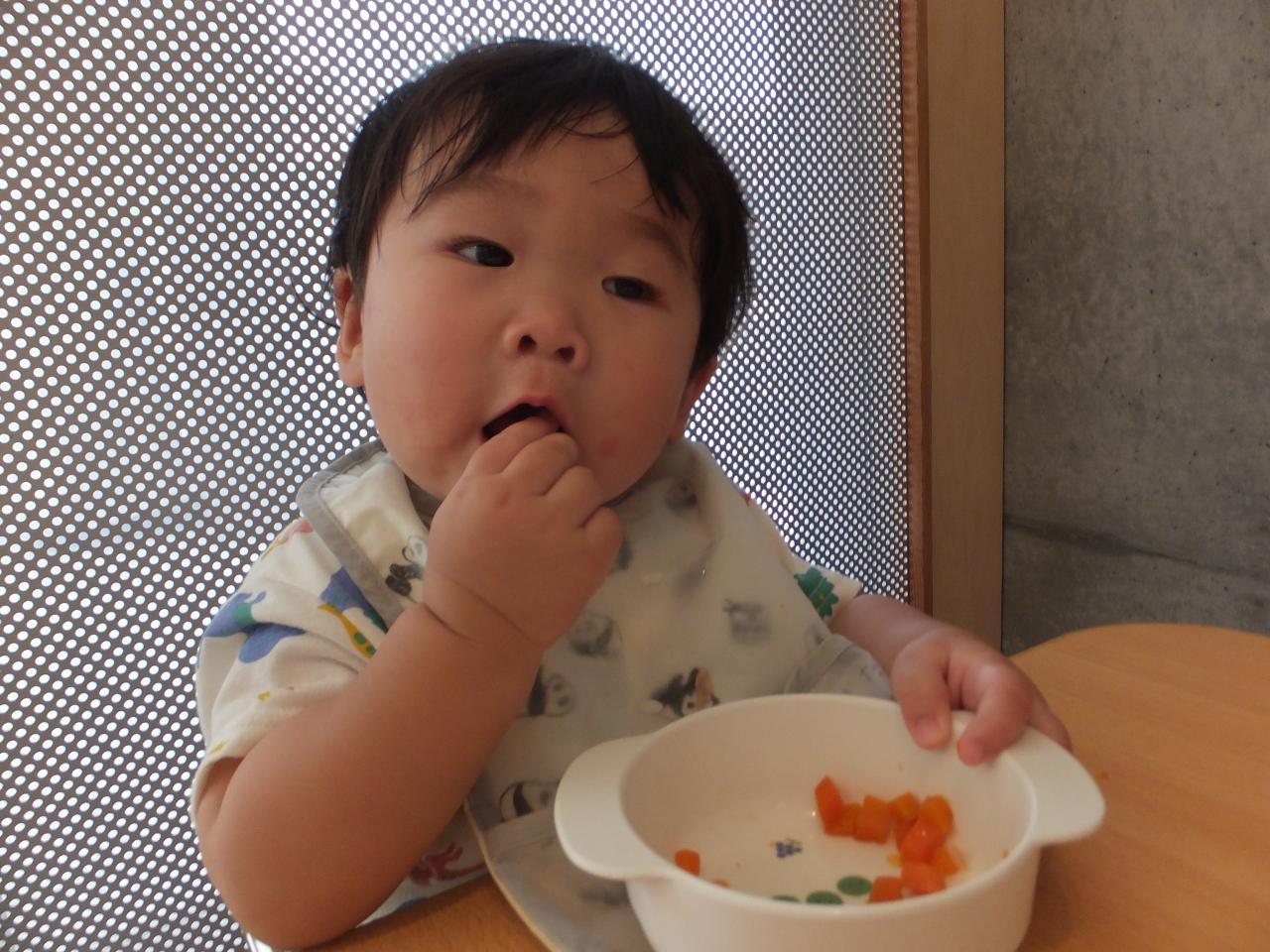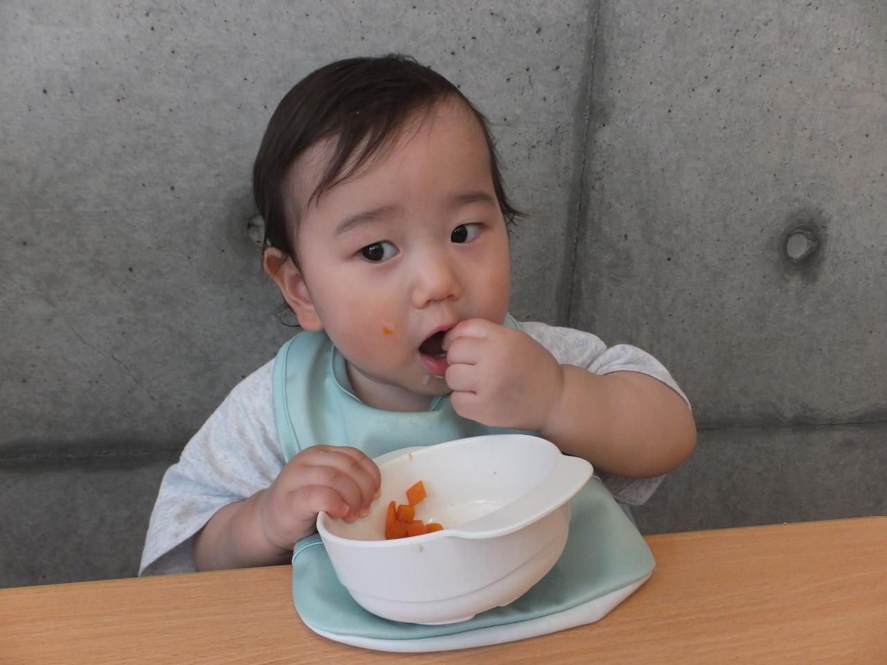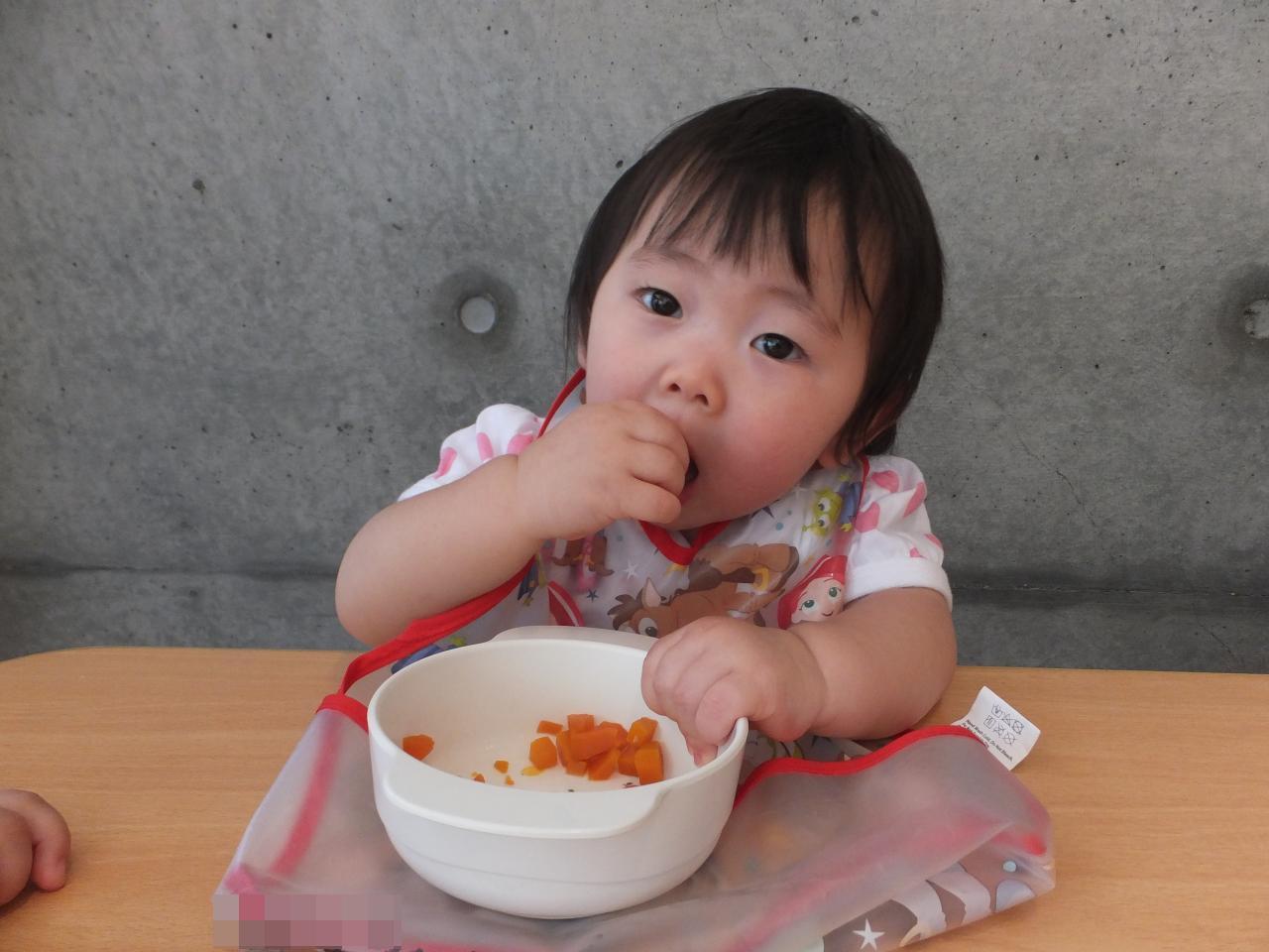 指先を上手に使って、食材をつまんで口に運んでいますよ。