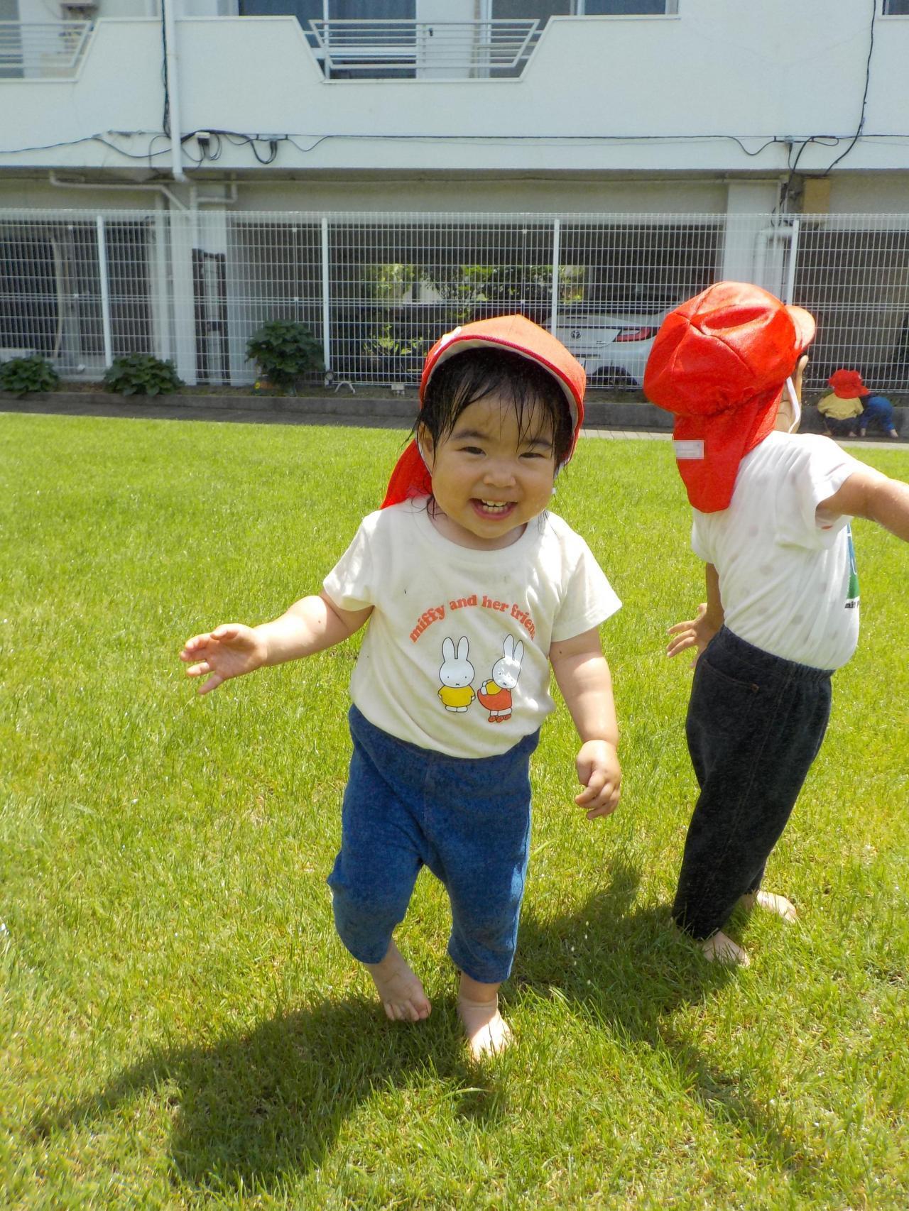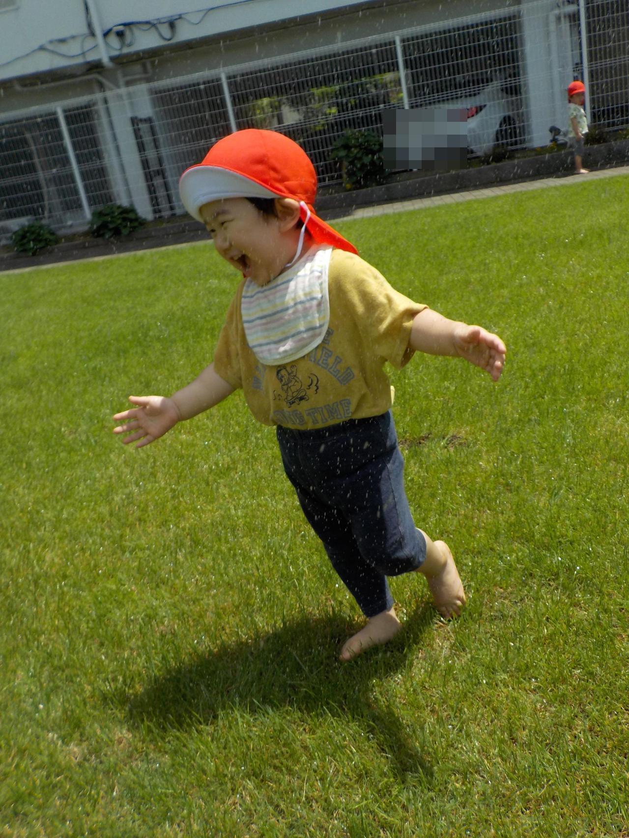 水が当たる場所に移動して、濡れると面白そうにする子どもたちです😊