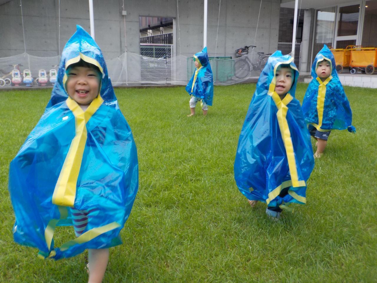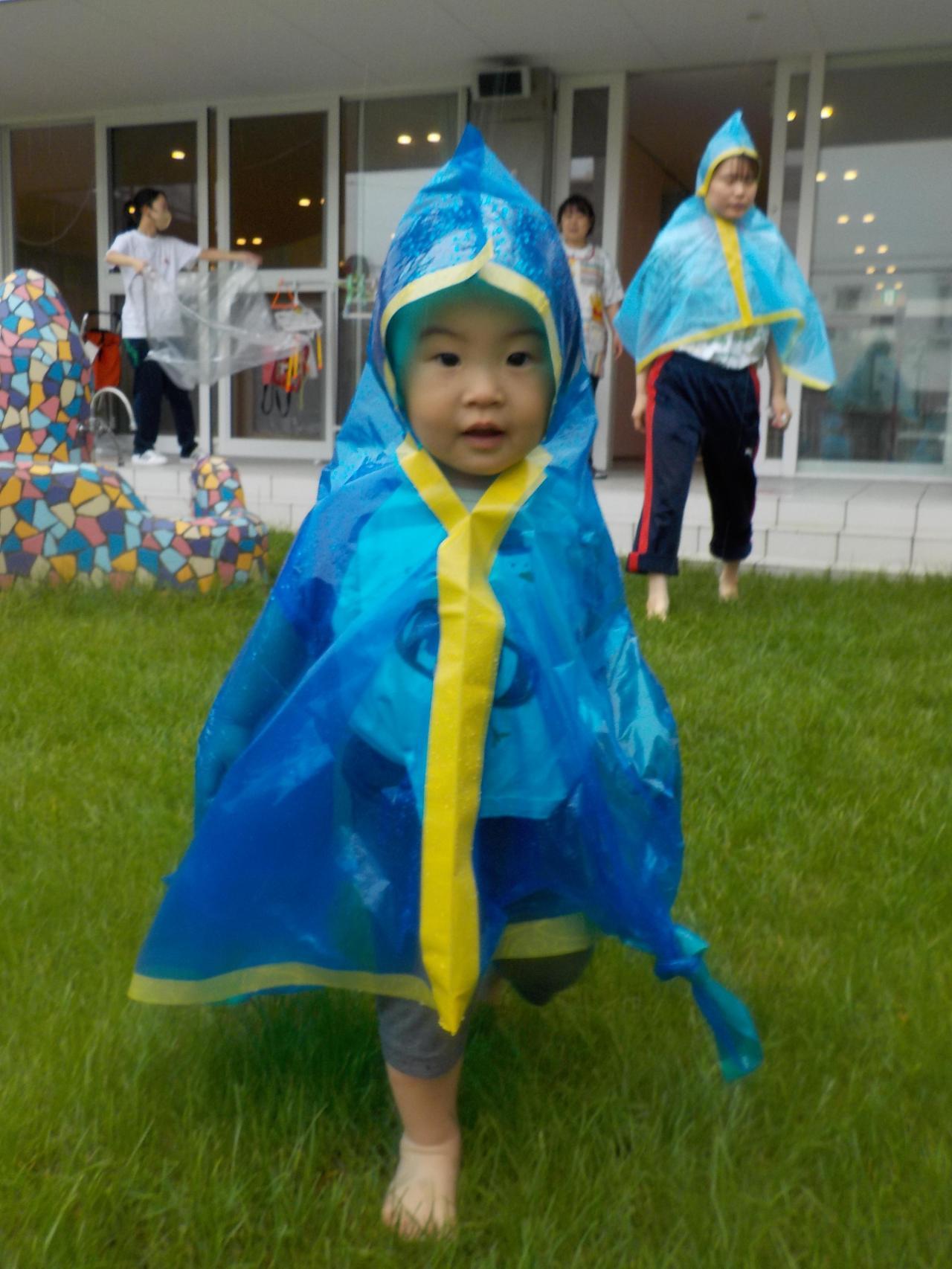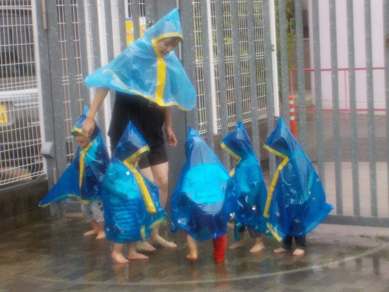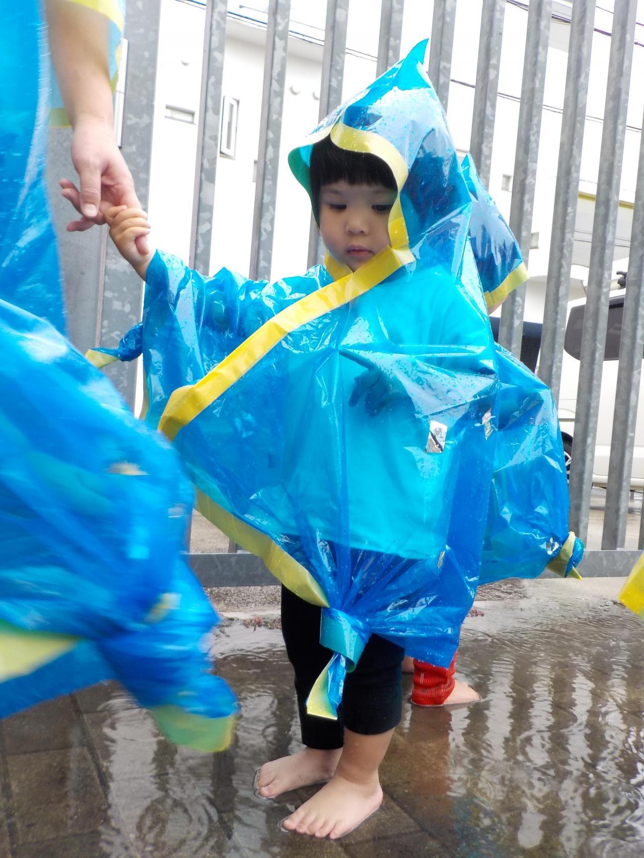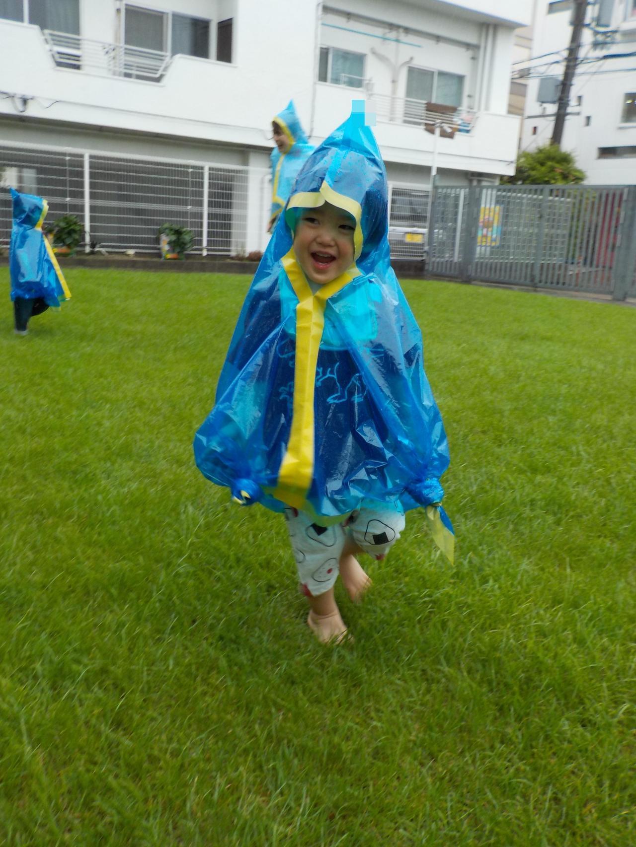 雨の音や冷たさを感じたり、水たまりの上で足踏みしてみたり、身体を動かしながら雨ならではの楽しさを味わいました!