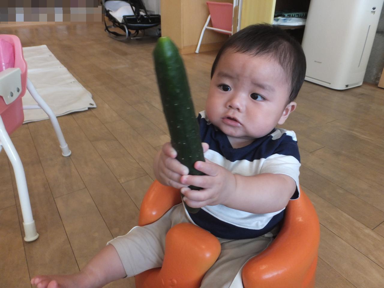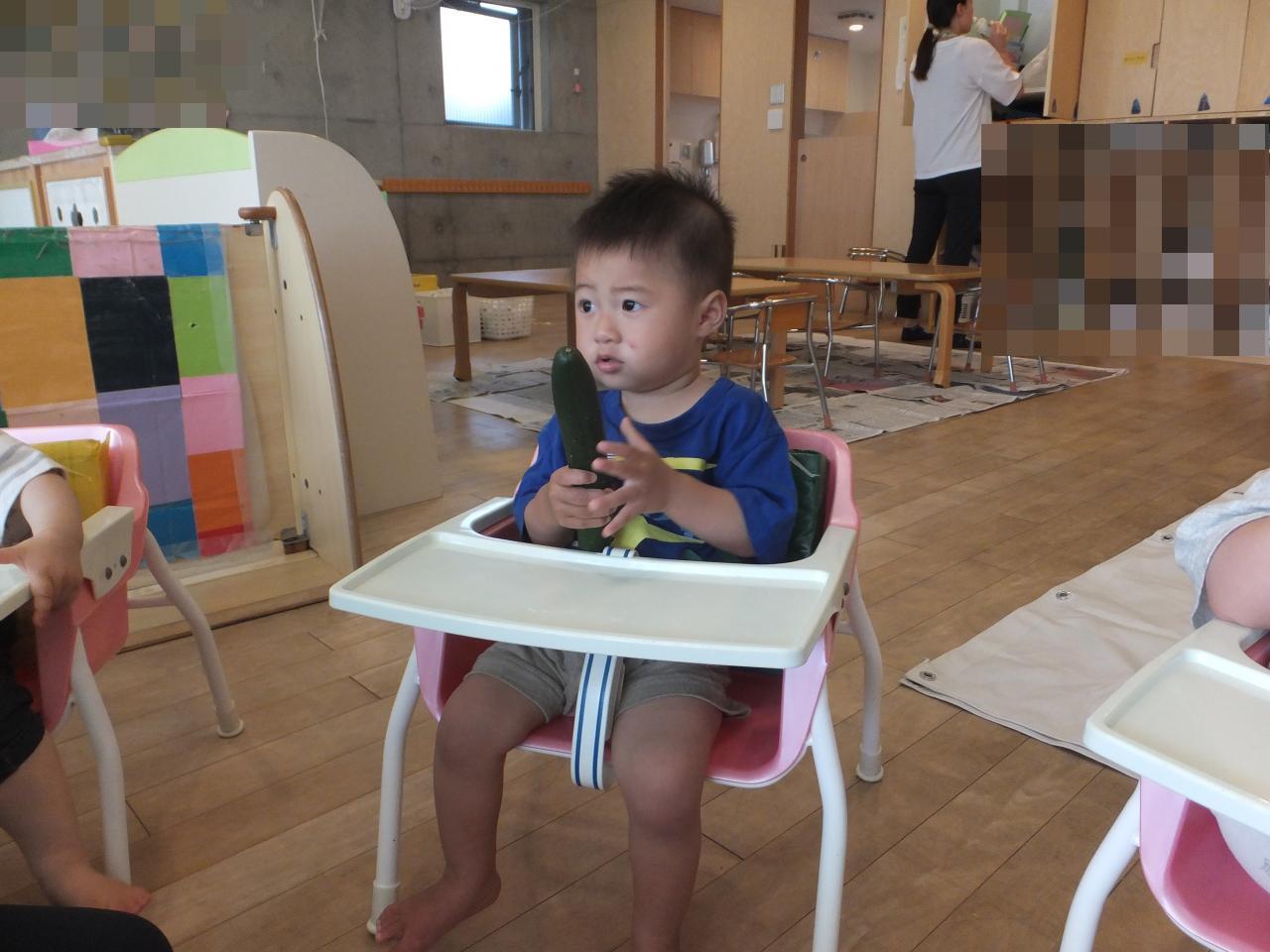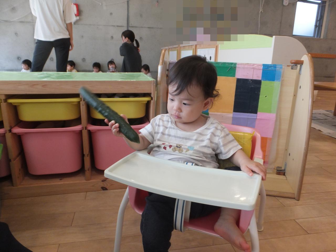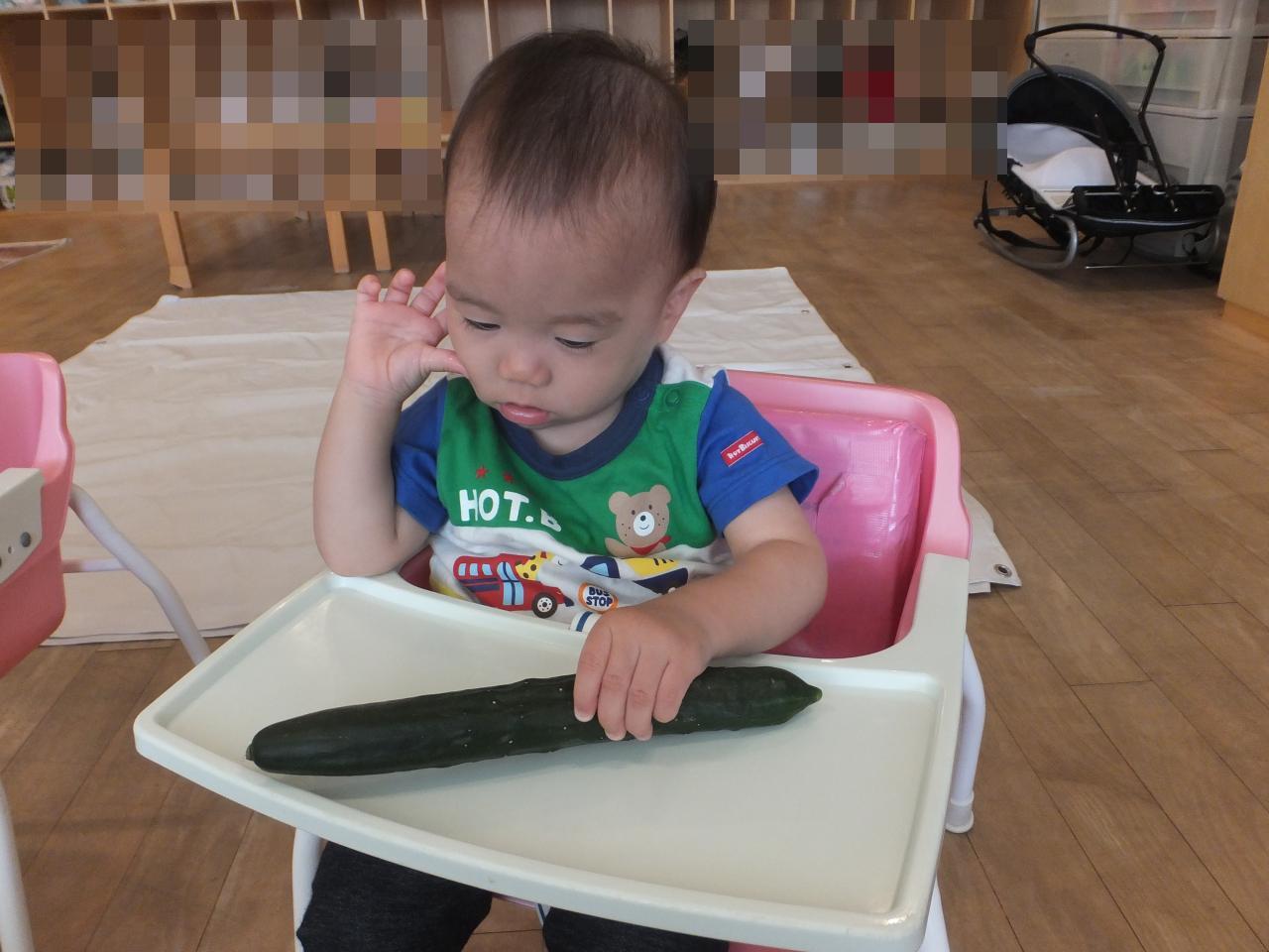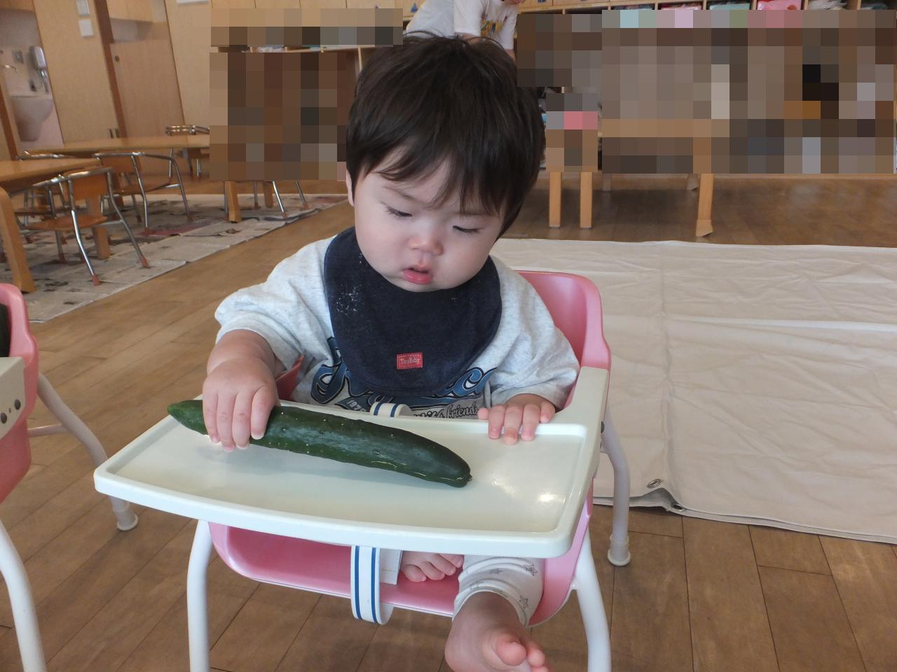 実際に本物のきゅうりを間近で見て、触り、興味津々な子どもたちでした😊