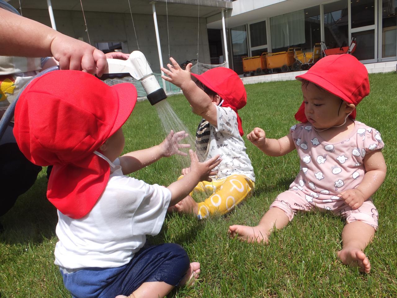 霧吹きシャワーに手を広げて気持ちよさそうに浴びていましたよ!