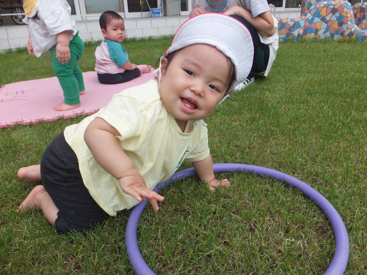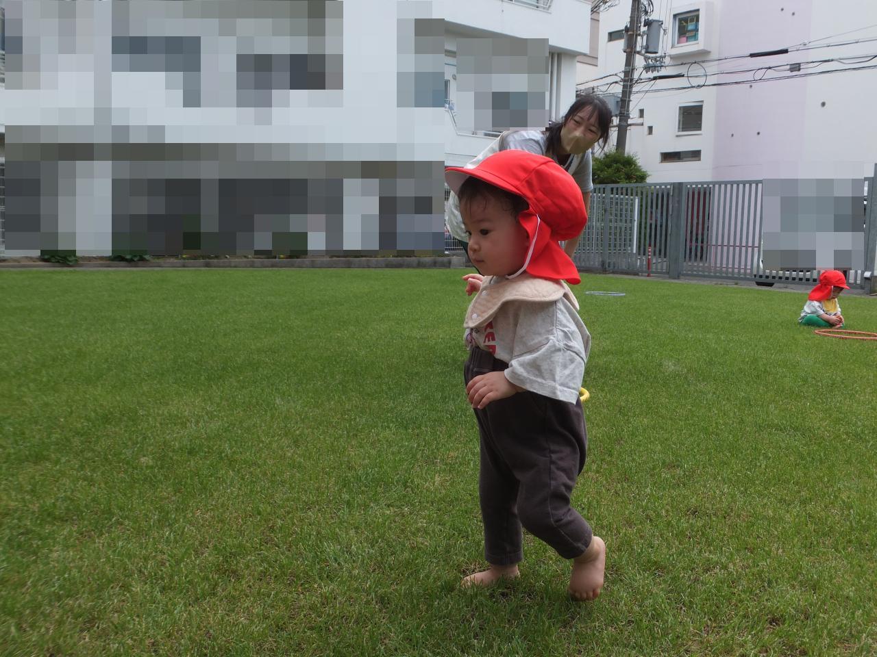 園庭で遊ぶのも少しずつ慣れ、芝生の上を自由に散策するようになりました👣