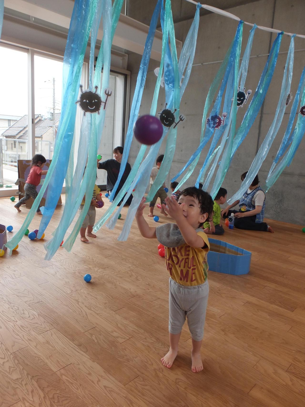ばい菌にボールが当たると嬉しそうにする子どもたちです😊