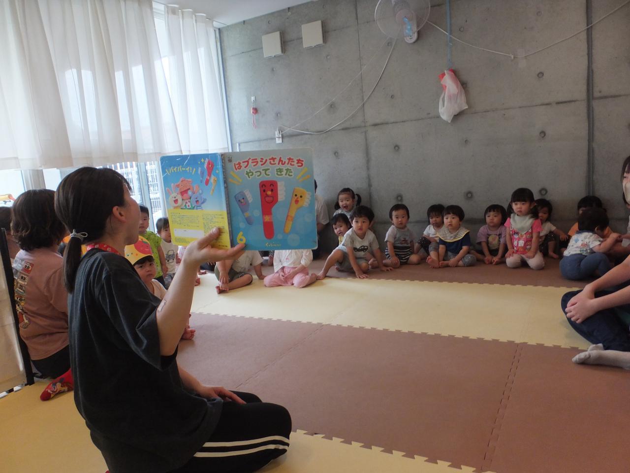 その後は歯磨きの絵本を読んでホールに向かいましたよ!