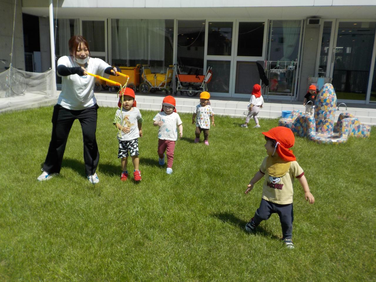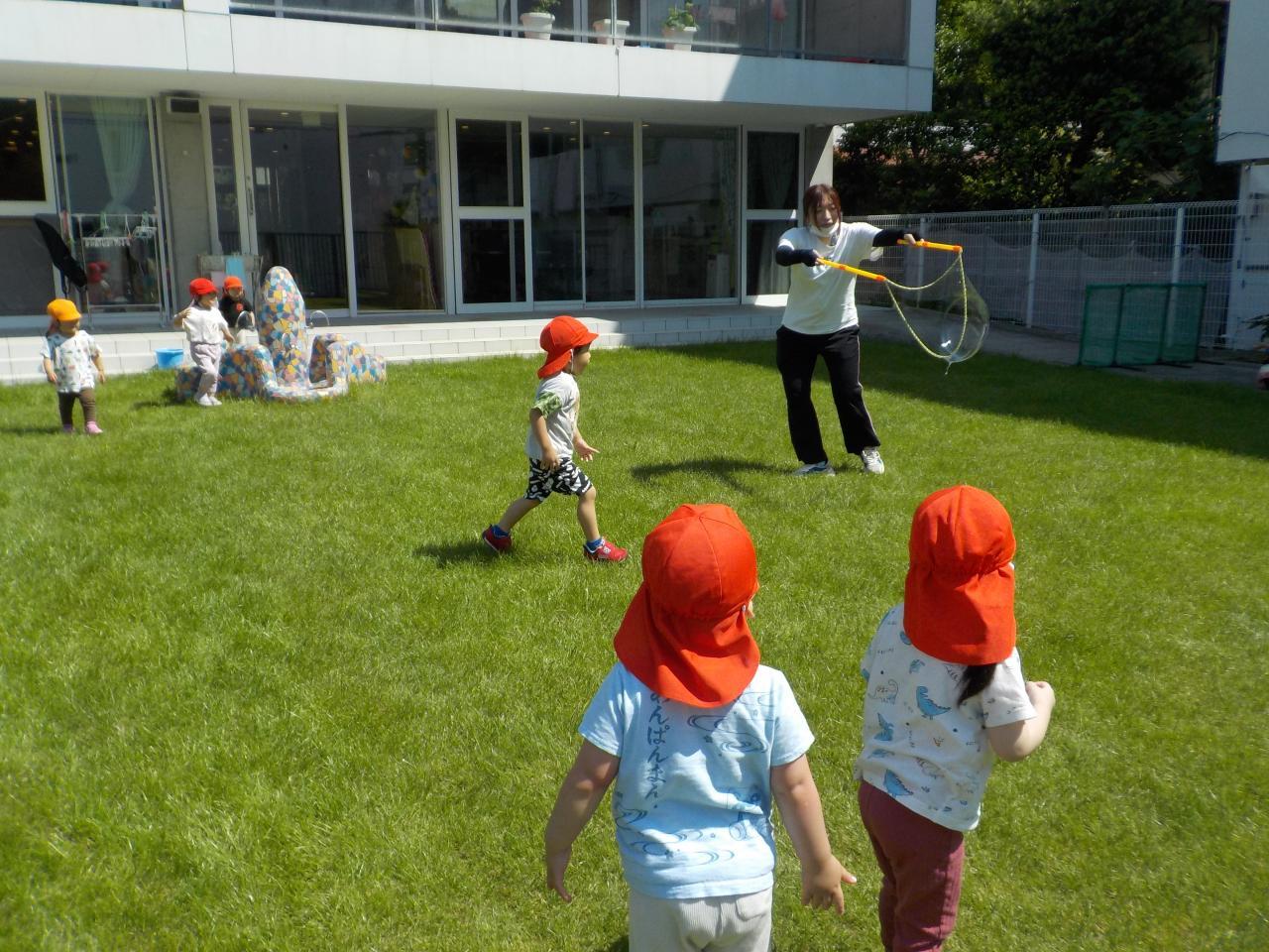 大きなシャボン玉を作ると「おおきい!」や「もっと作って!」と
