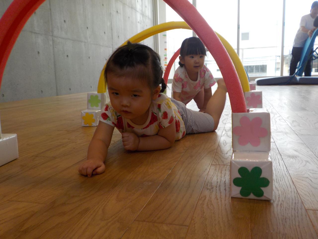 ホールでは、走ったり、いろんな体勢で進んだりして遊ぶ時もあります。
