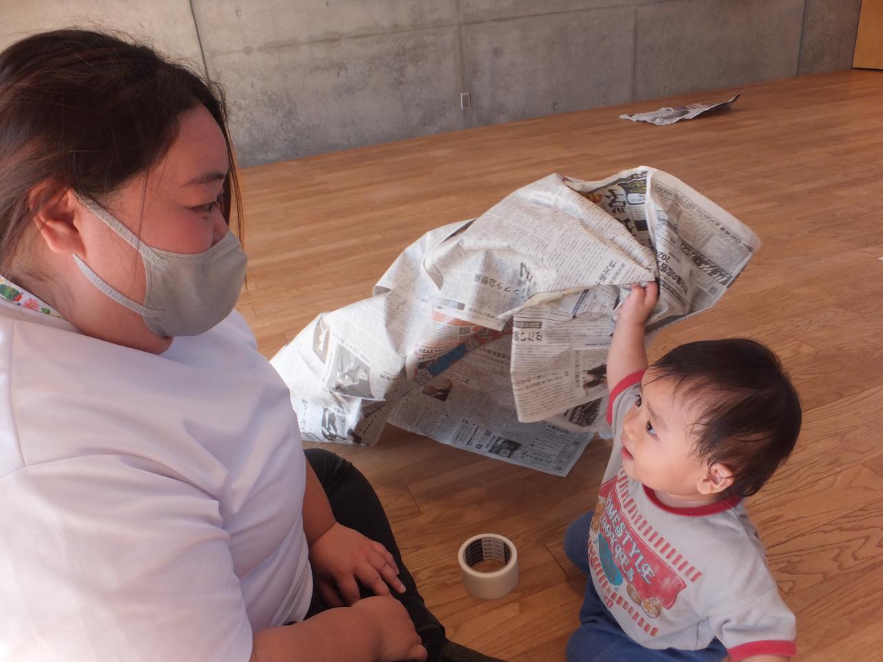 ばあ!と顔を出して遊んだり、新聞紙でハチマキを作ったりして遊びました🎵