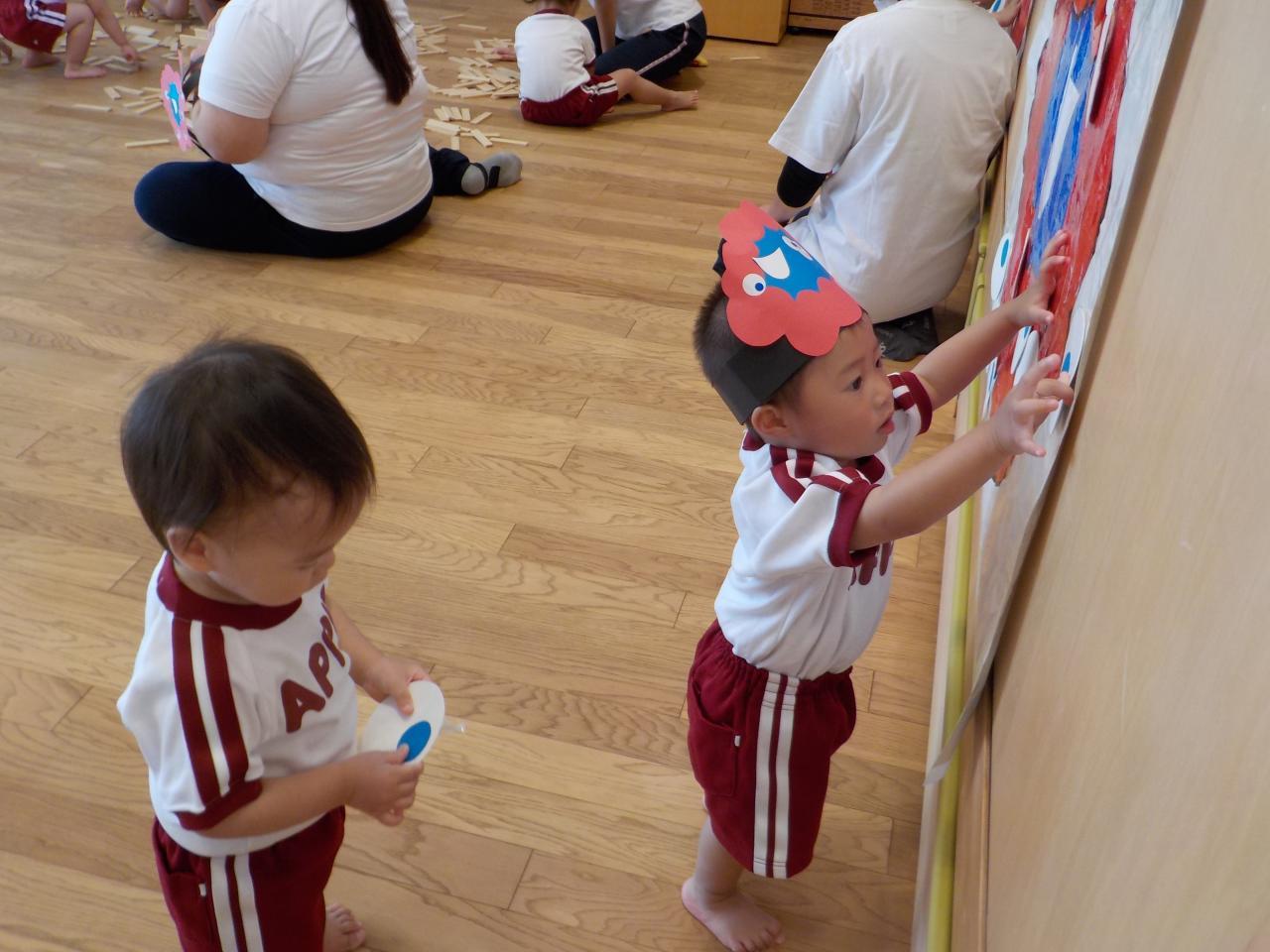 そして、たくさん遊んだあとは、楽しい給食!1階の保育室で3クラス一緒に食べましたよ。