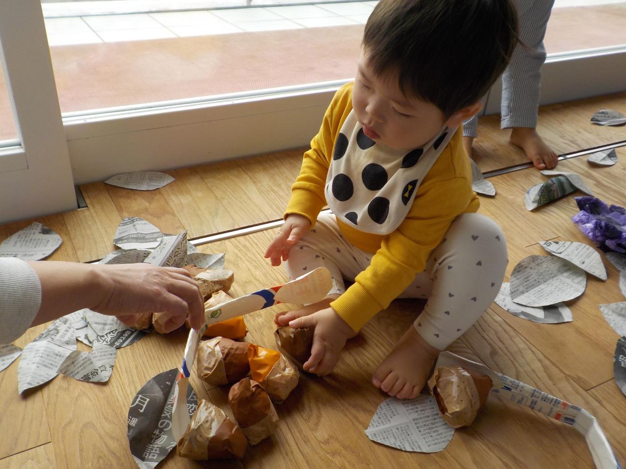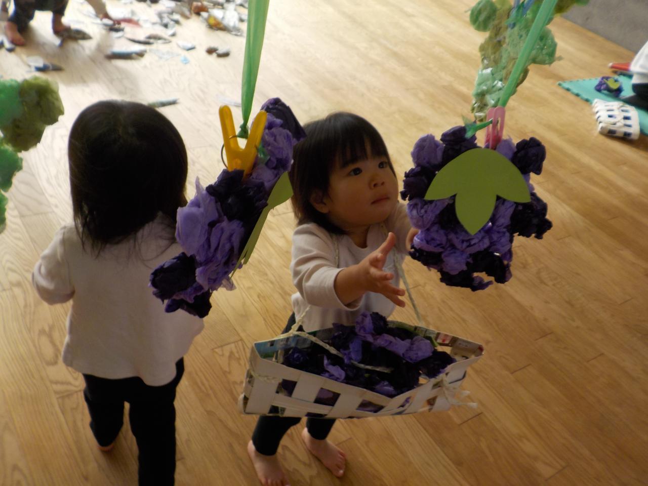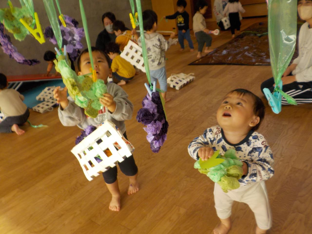 今月はお誕生日のお友だちがいなかったため、みんなで”秋の味覚狩り”をホールにて行いましたよ。