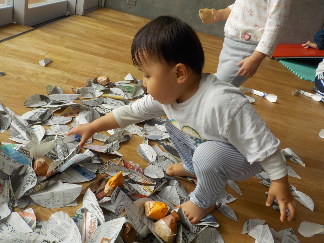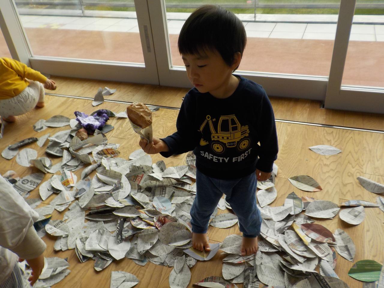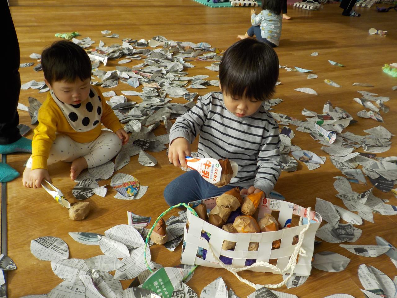 今月はお誕生日のお友だちがいなかったため、みんなで”秋の味覚狩り”をホールにて行いましたよ。
