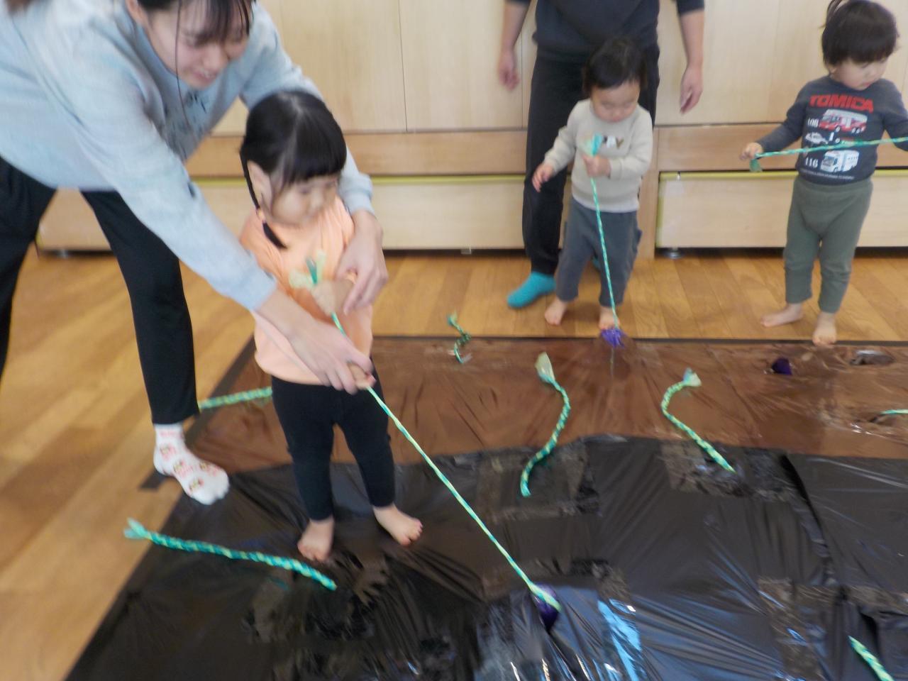 土から伸びるツルを引っ張り、たくさんのサツマイモを収穫しました。力いっぱい引っ張り、お芋が出てくると、とても嬉しそうな子どもたちでしたよ🍠