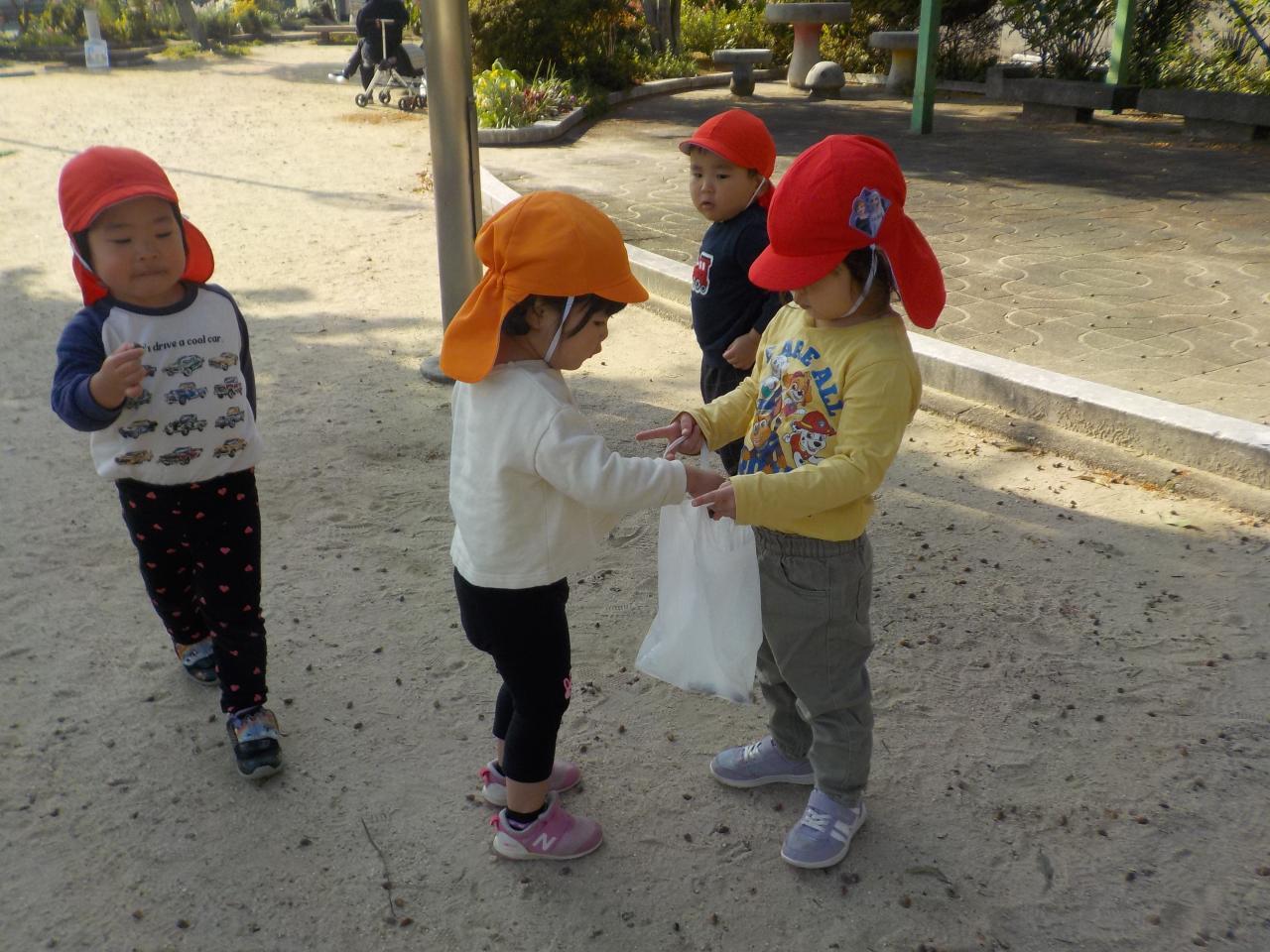 公園内の探索やどんぐり拾いに夢中の子どもたちでした♪