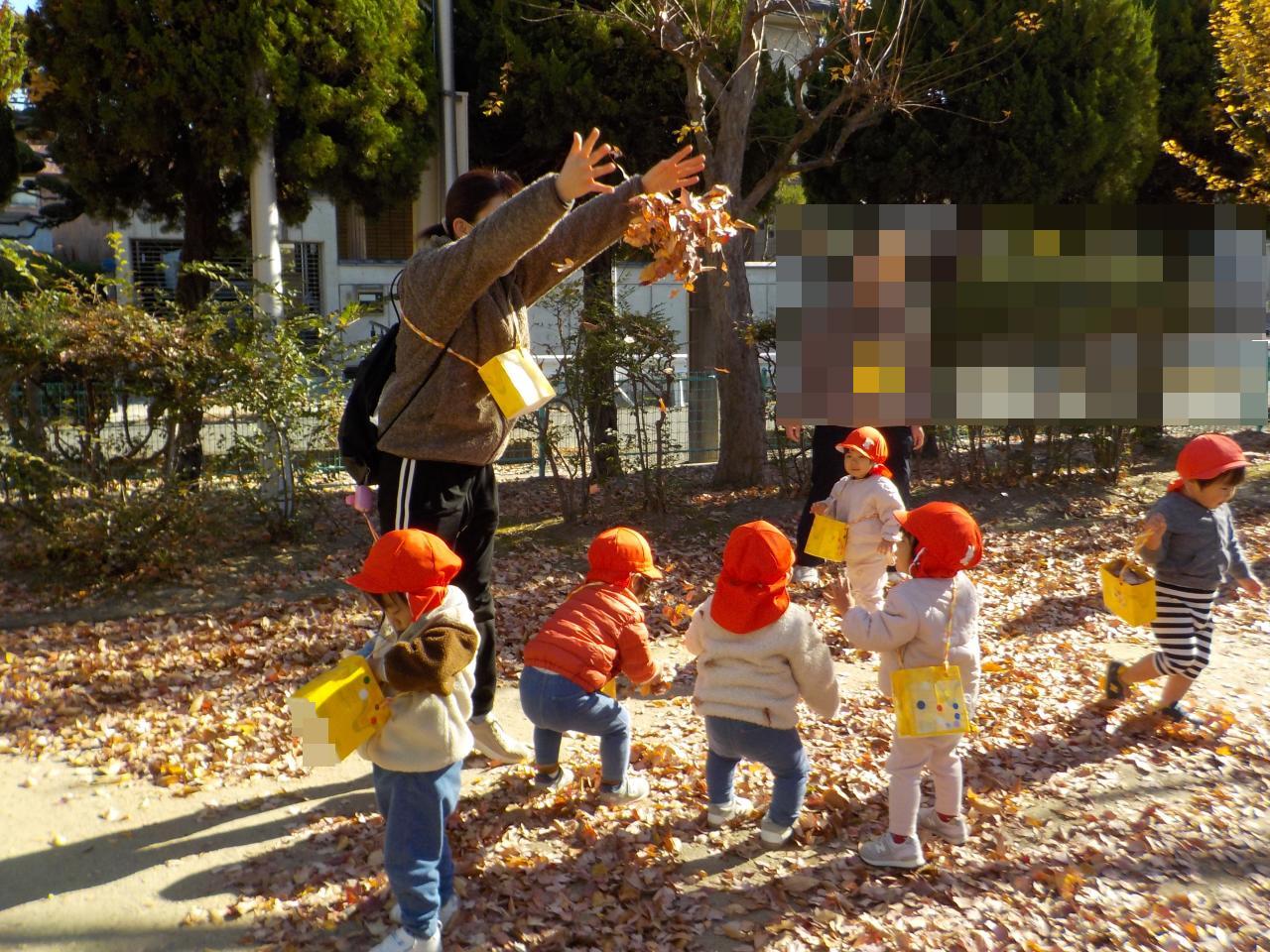 麻田公園や園庭で石や落ち葉を拾い集めて楽しみましたよ🍂