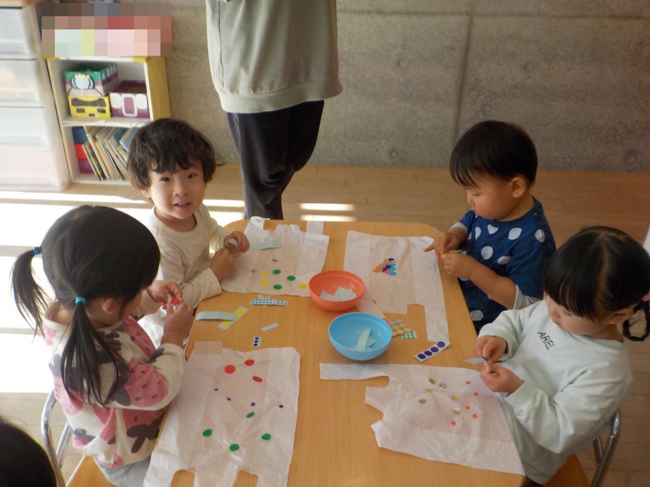 みんながよく歌っているお正月の歌にも「お正月には凧あげて~」という歌詞があるので、口ずさんだり、イメージをしたりしながら取り組む子どもたちでした✨
