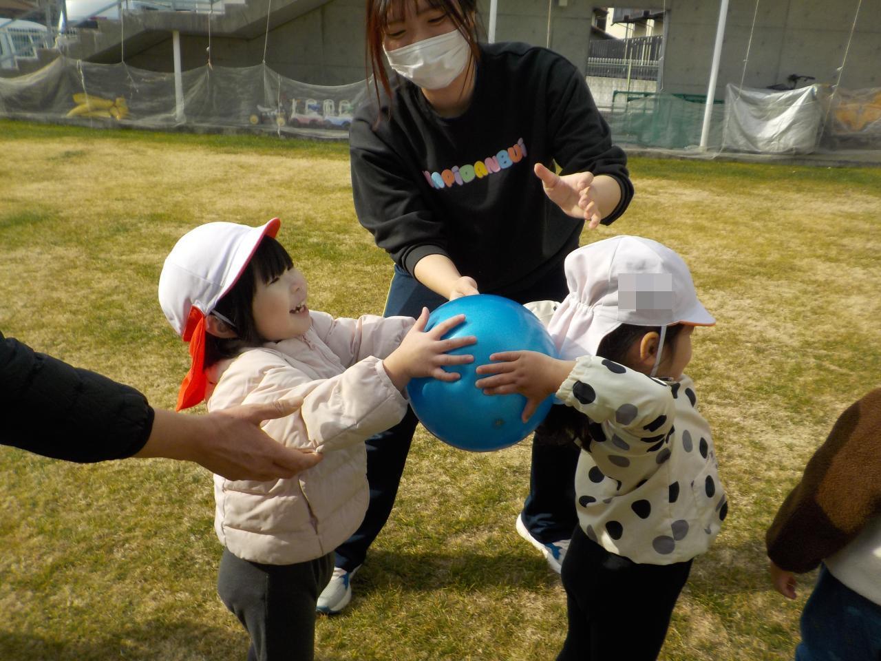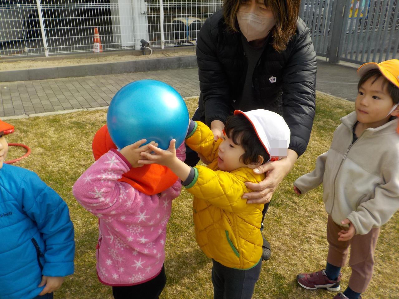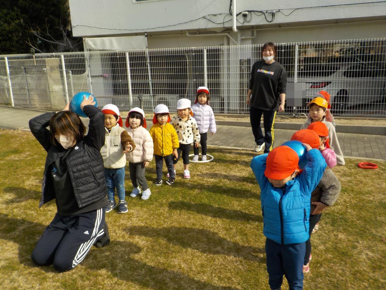 後ろのお友だちにボールを渡そうと奮闘する様子が可愛らしかったです💝