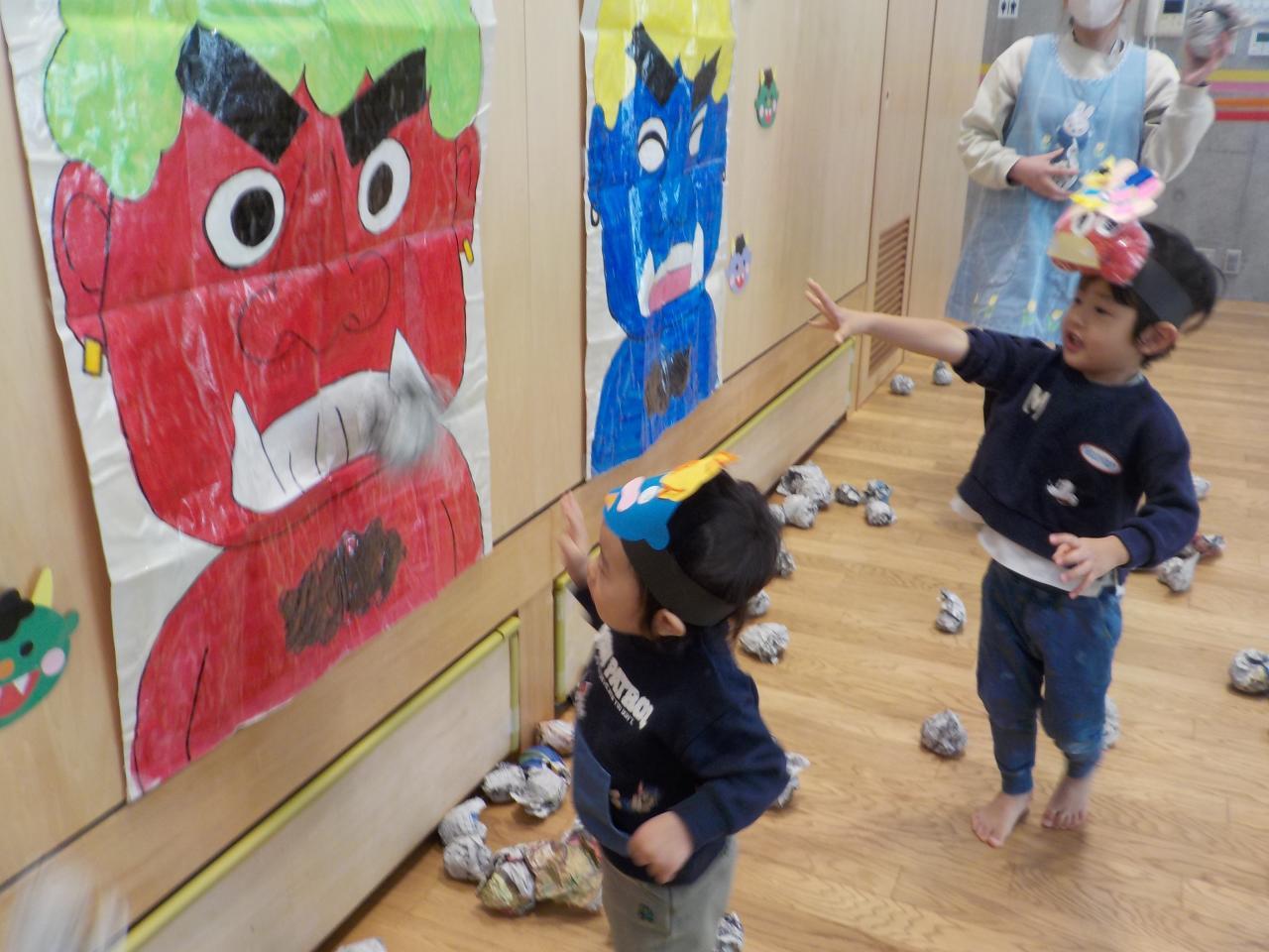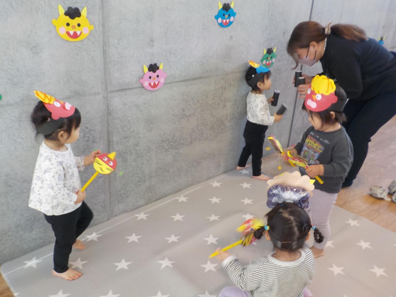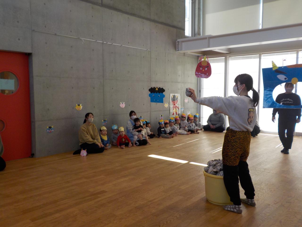 1階のお部屋に集まり、みんなで絵本を見たり、「まめまき」や「鬼のパンツ」の歌を歌ったりして楽しみました!