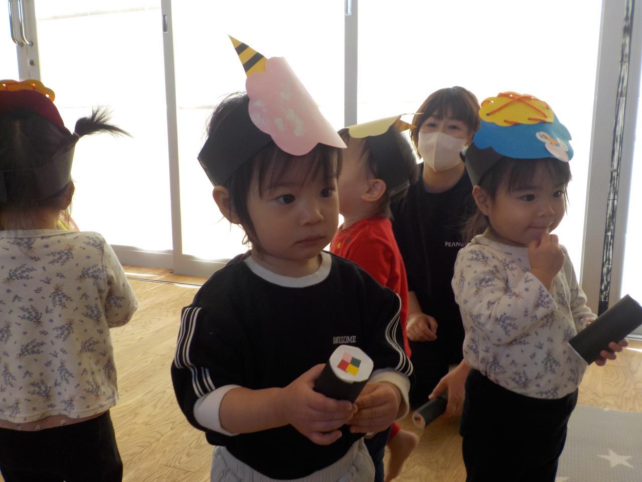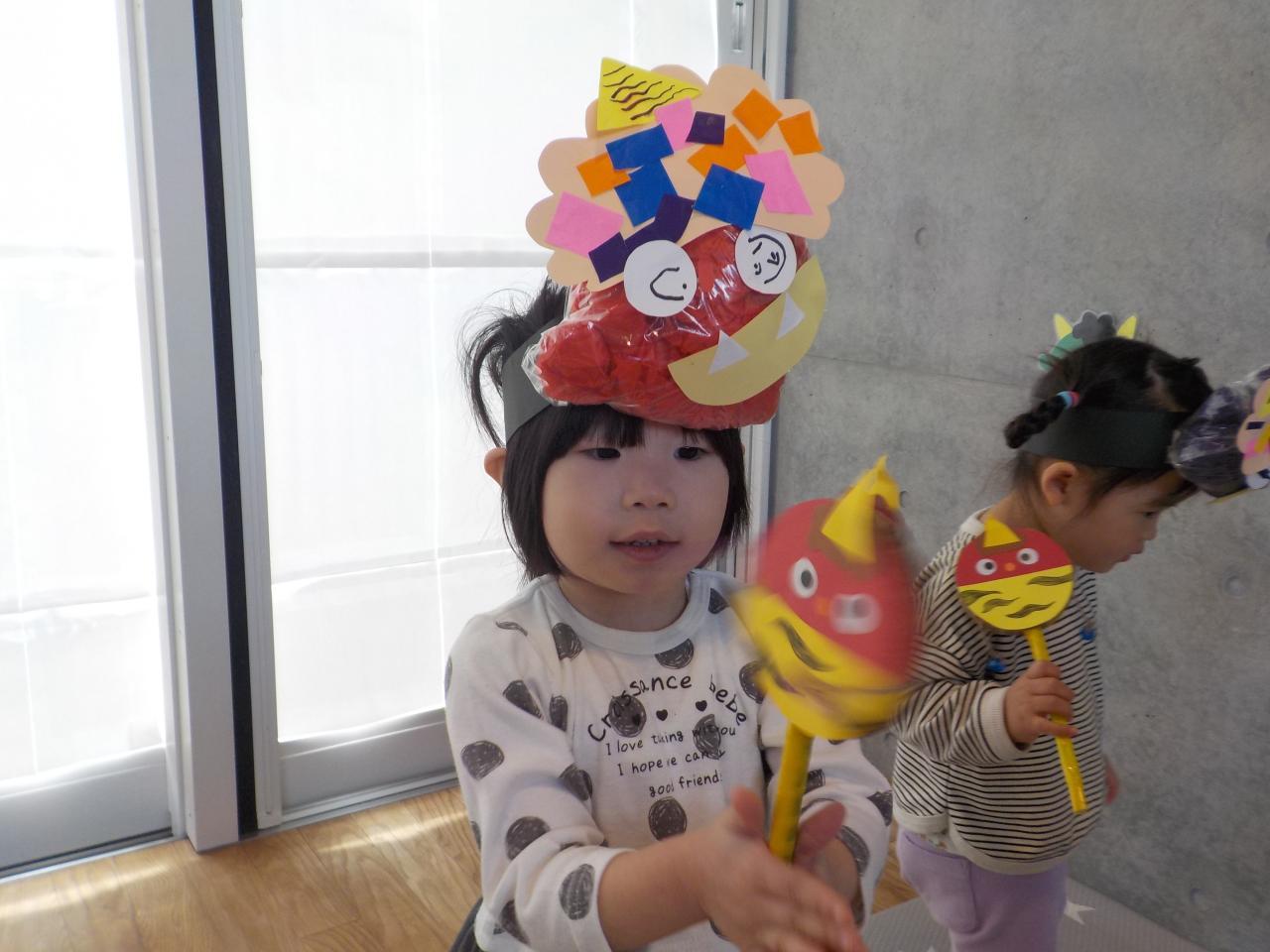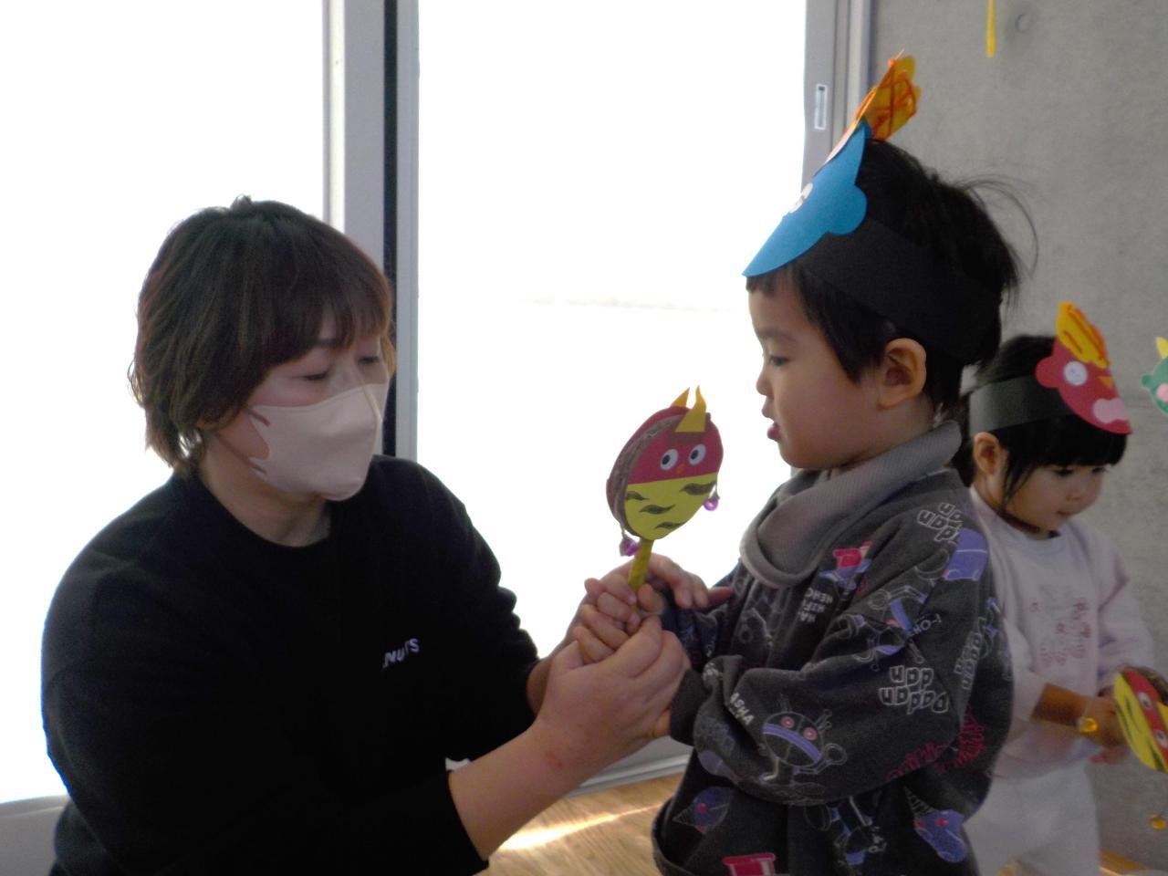 恵方巻のマラカスや鬼のでんでん太鼓で遊びました!