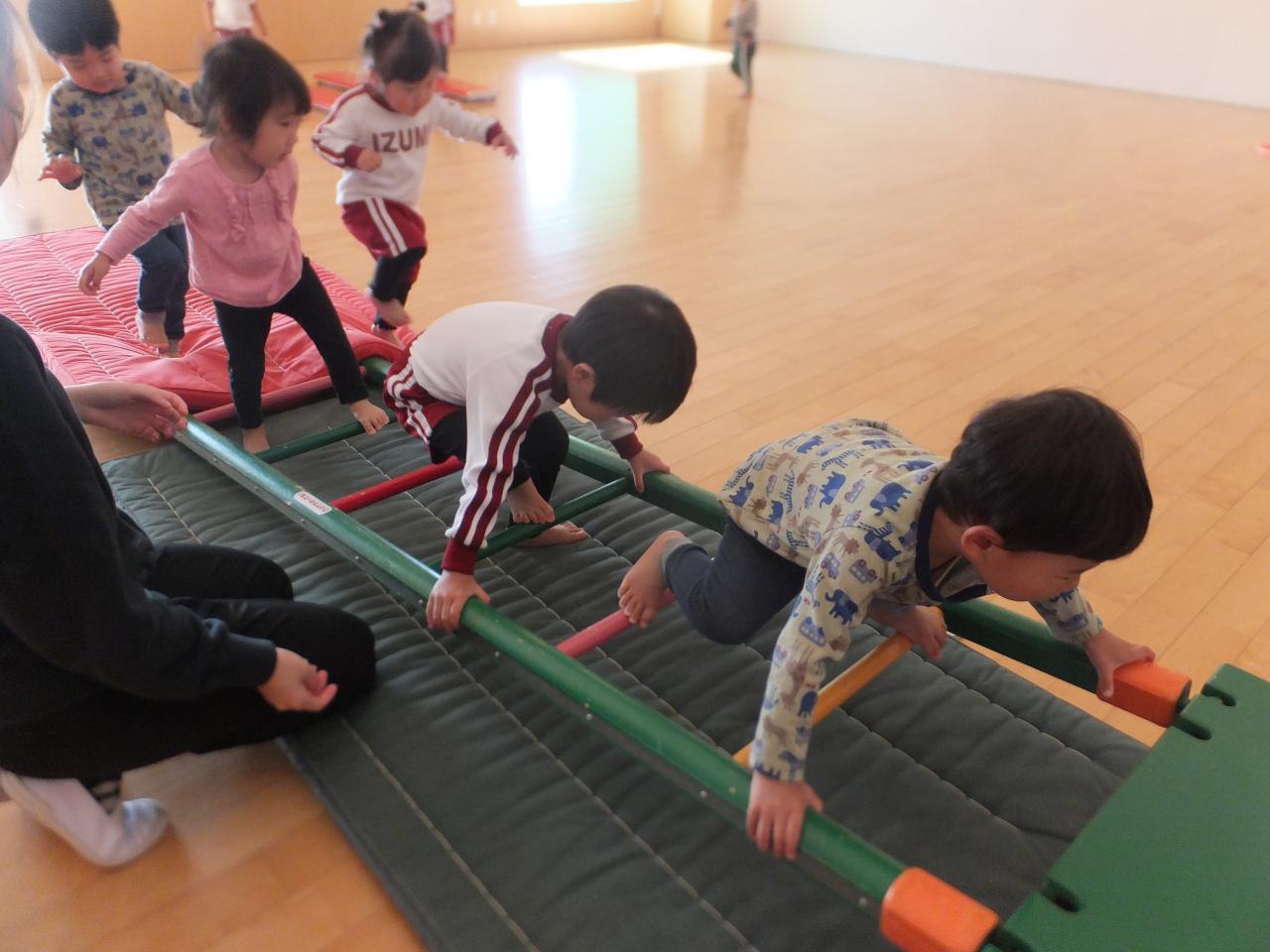 梯子も両手でしっかり持ち、バランスを取って落ちないように渡ることができるようになりました(^^♪