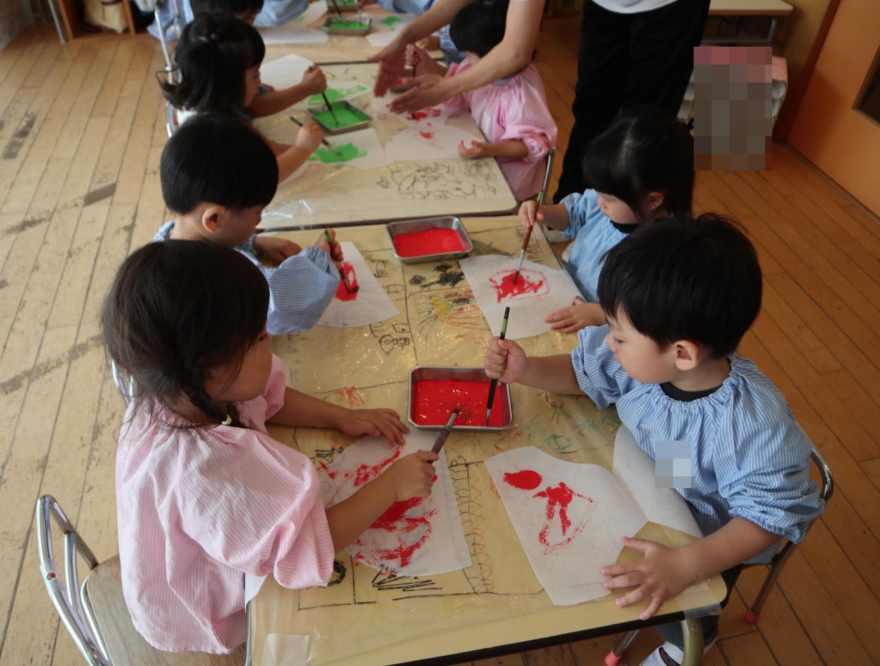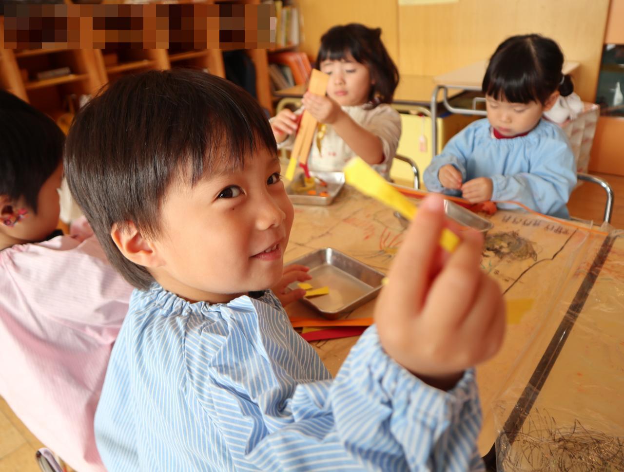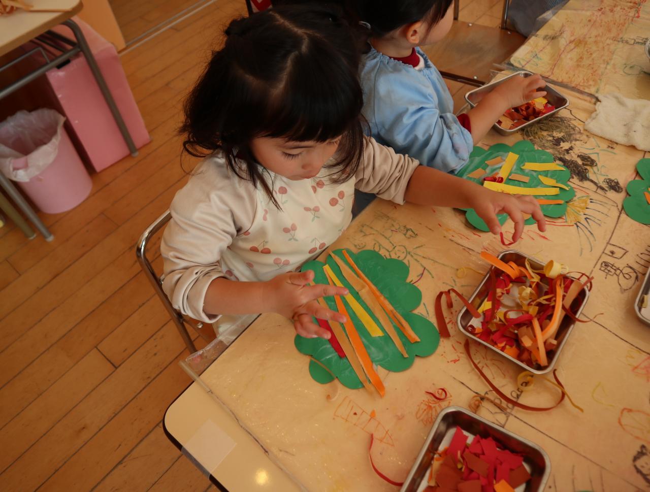秋の葉っぱを作りました🍂はっぱをちぎちぎ、糊をたっぷりぬりぬりしたよ♬