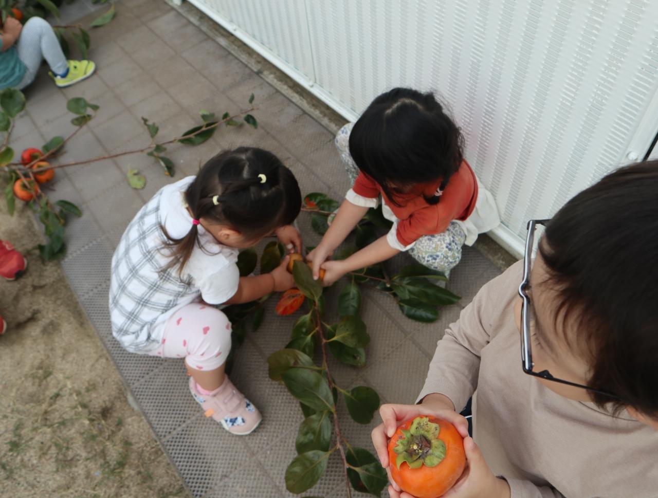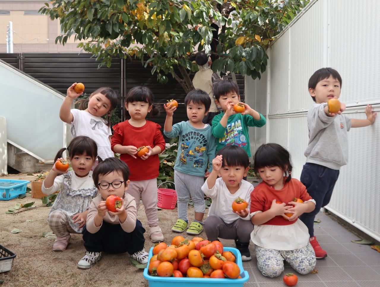 園長先生と警備主任が切ったくれた枝から、柿の実を収穫♬おうちで食べて、おいしかった~!!とお話ししてくれました✨