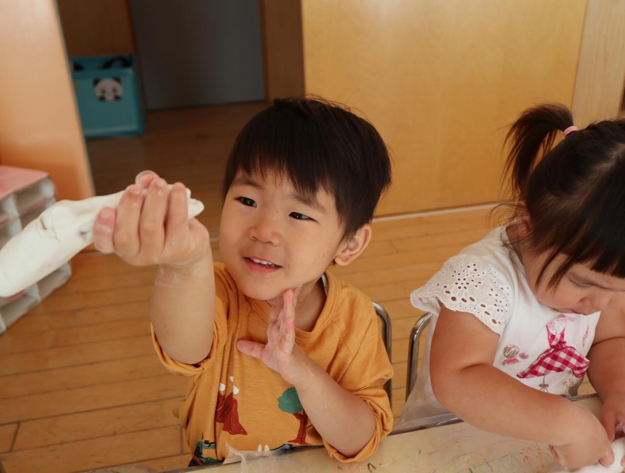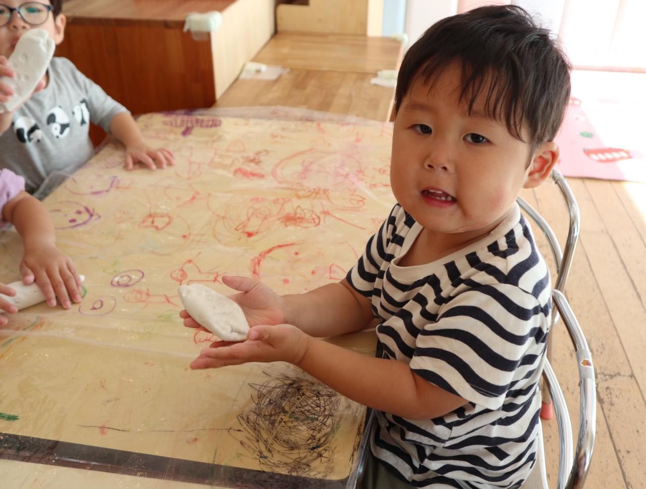 初めての紙粘土の感触にワクワク♬こんな形になったよ~!